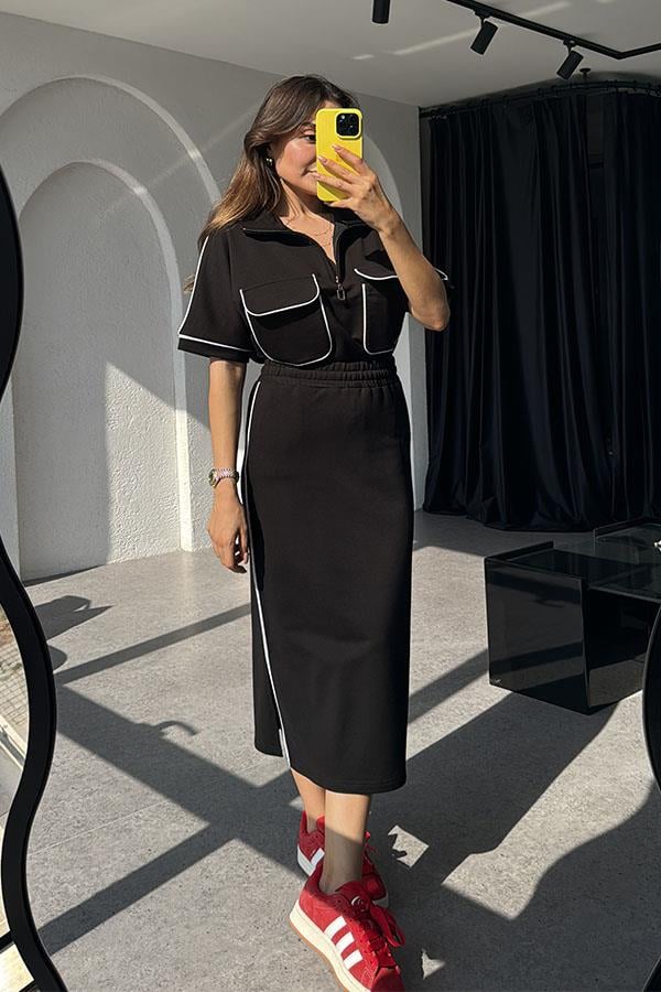 Adlea Cep Detaylı Şeritli Etek Takım-Siyah - modern yaşamın gereksinimlerine uygun, şık ve fonksiyonel bir seçenek. Hem günlük hem de özel anlarınızda rahatlıkla kullanabileceğiniz bu tasarım, kaliteden ödün vermeyenler için. Her detayında özenle işlenmiş zarafet, her adımınızda size eşlik edecek. Yeni koleksiyonumuzla, farklı ve şık bir tarz keşfedin. Size özel bir deneyim sunuyoruz.