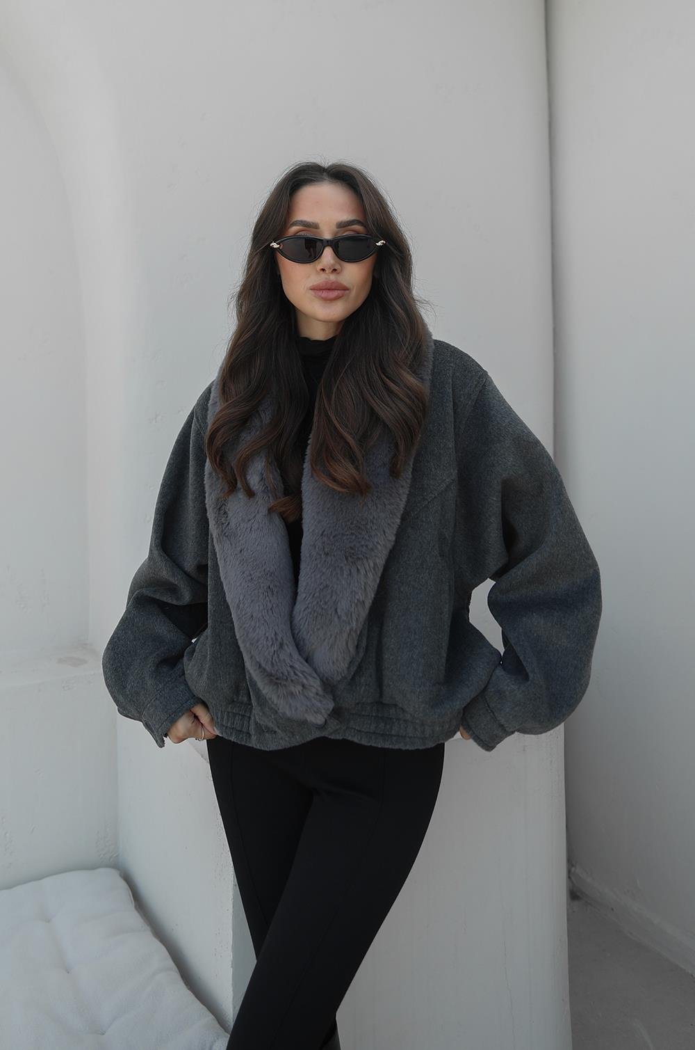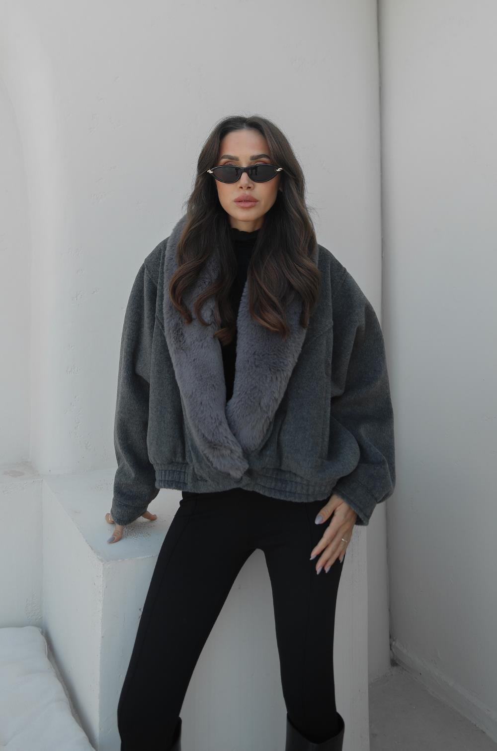 ANTRASIT PELUŞ KÜRK YAKALI MONT