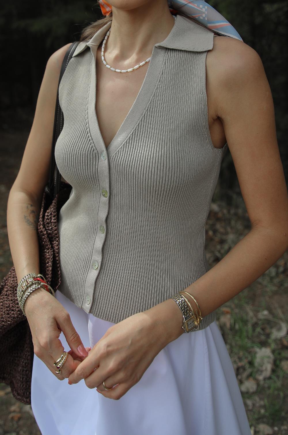 BEJ DAVINO POLO YAKA TRIKO YELEK