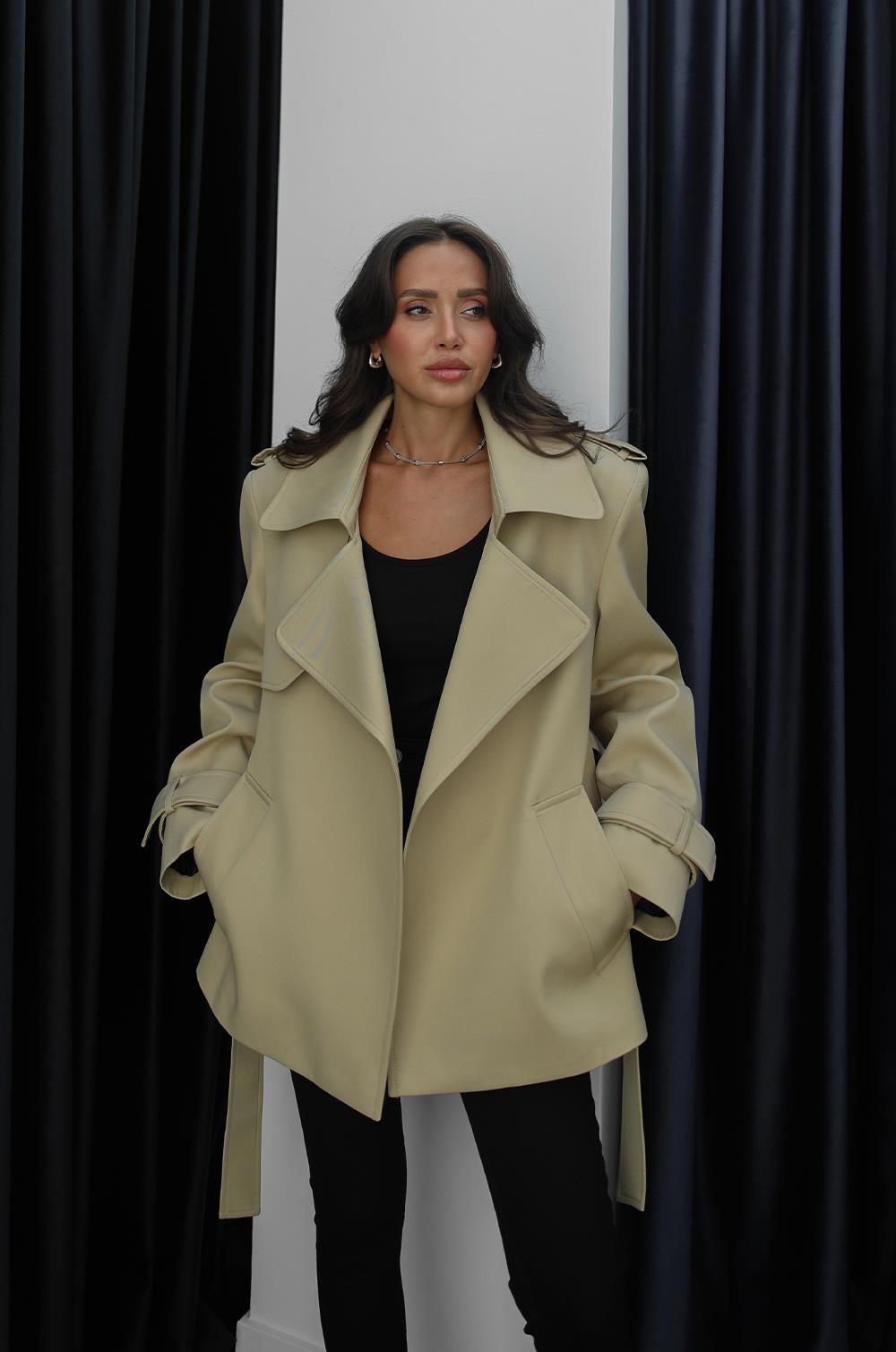 BEJ GABARDIN ORTA BOY KUŞAKLI CEKET