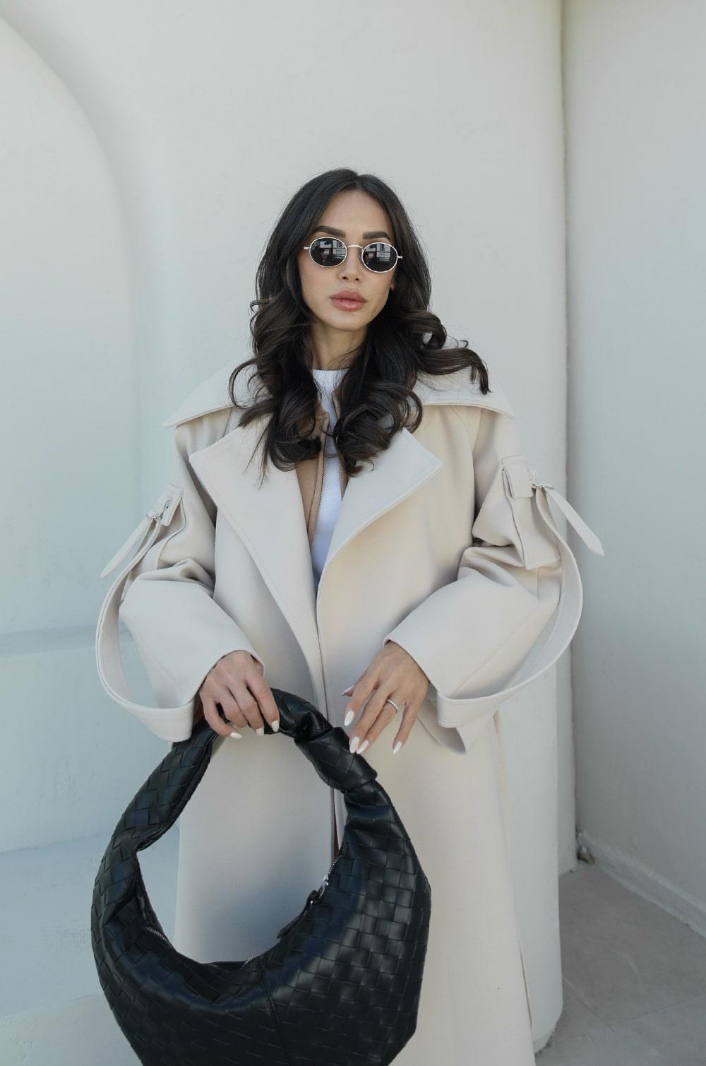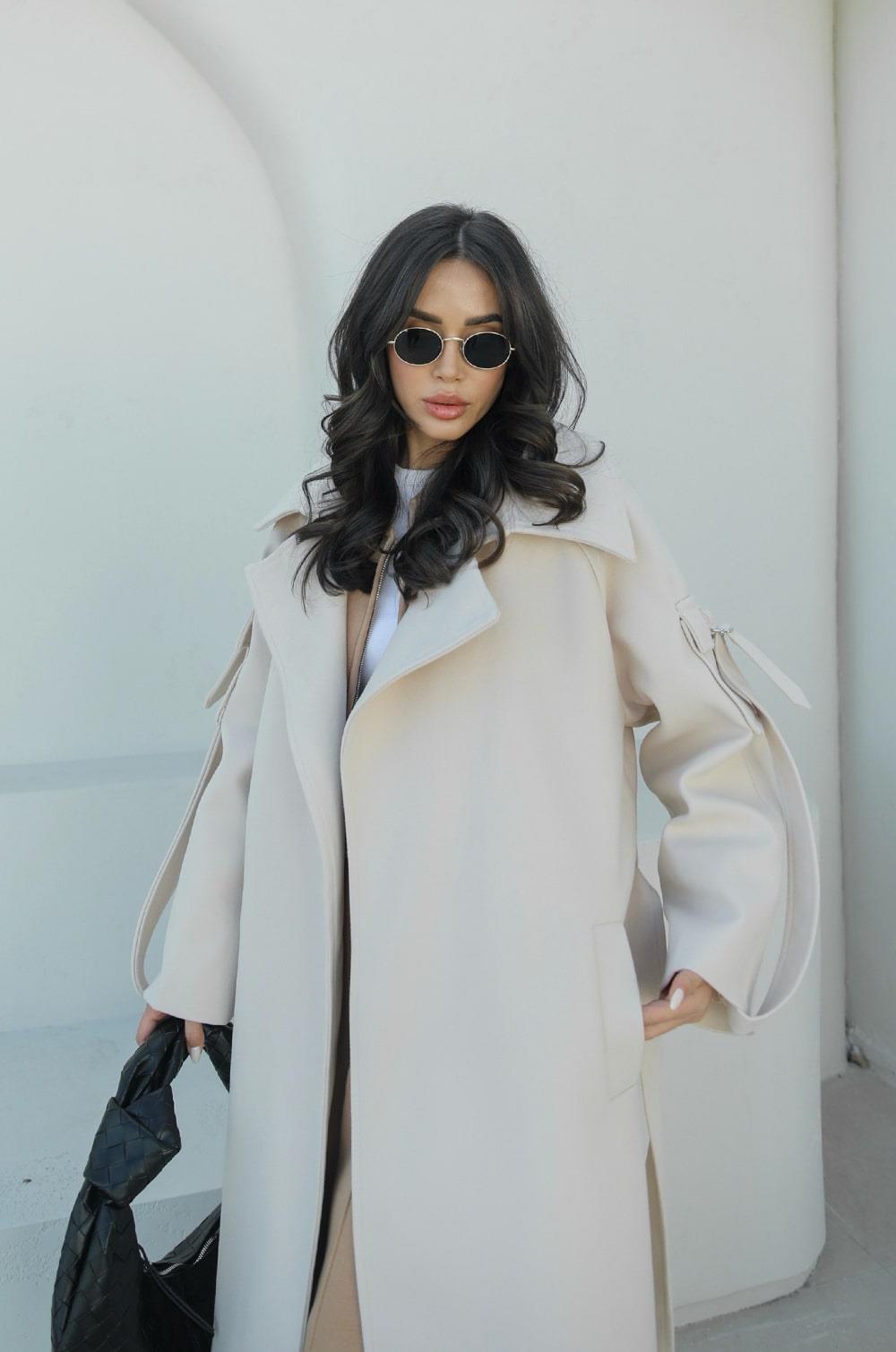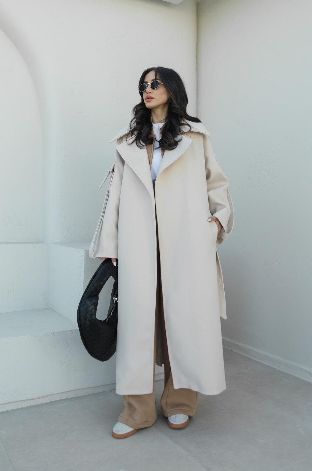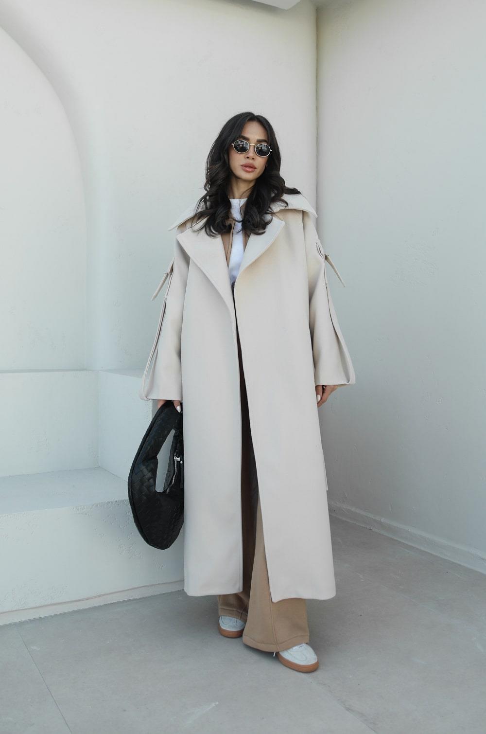 BEJ HILDA KOLLARI CEP DETAYLI KAŞE KABAN