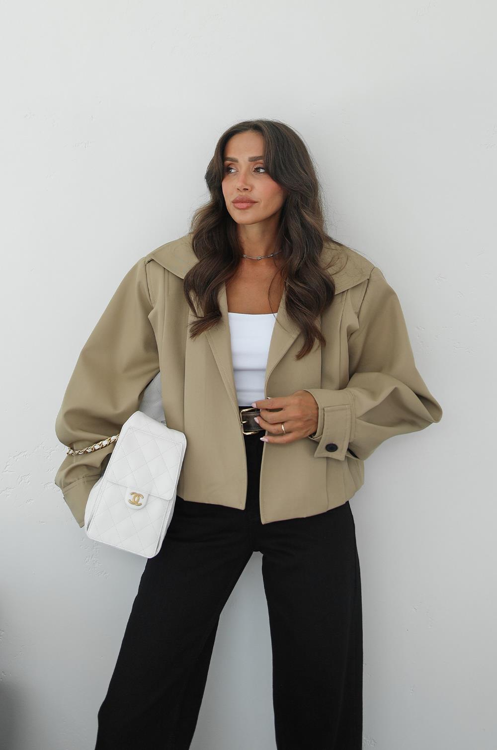 BEJ OMUZLARI APOLET DETAYLI CEKET