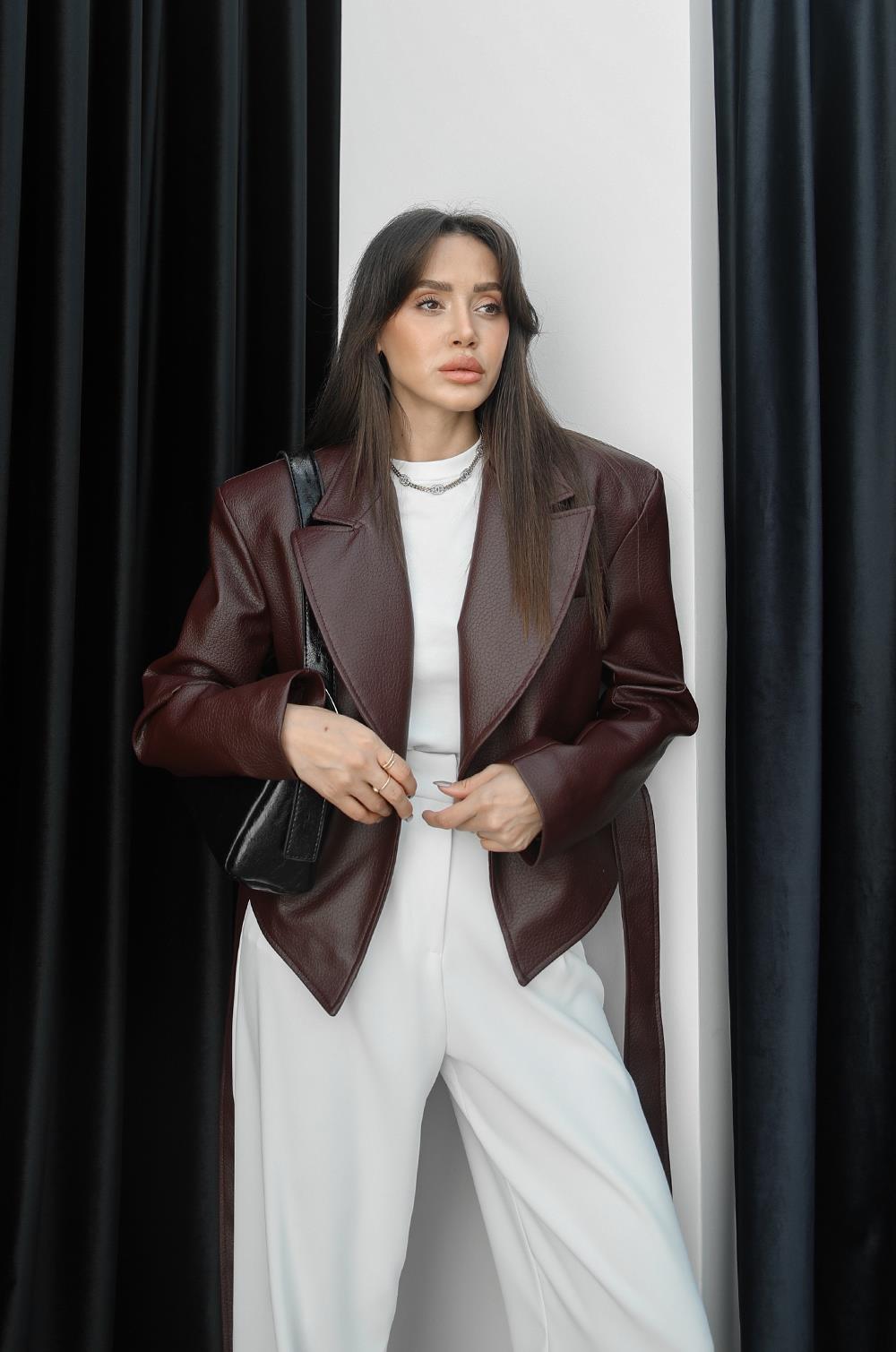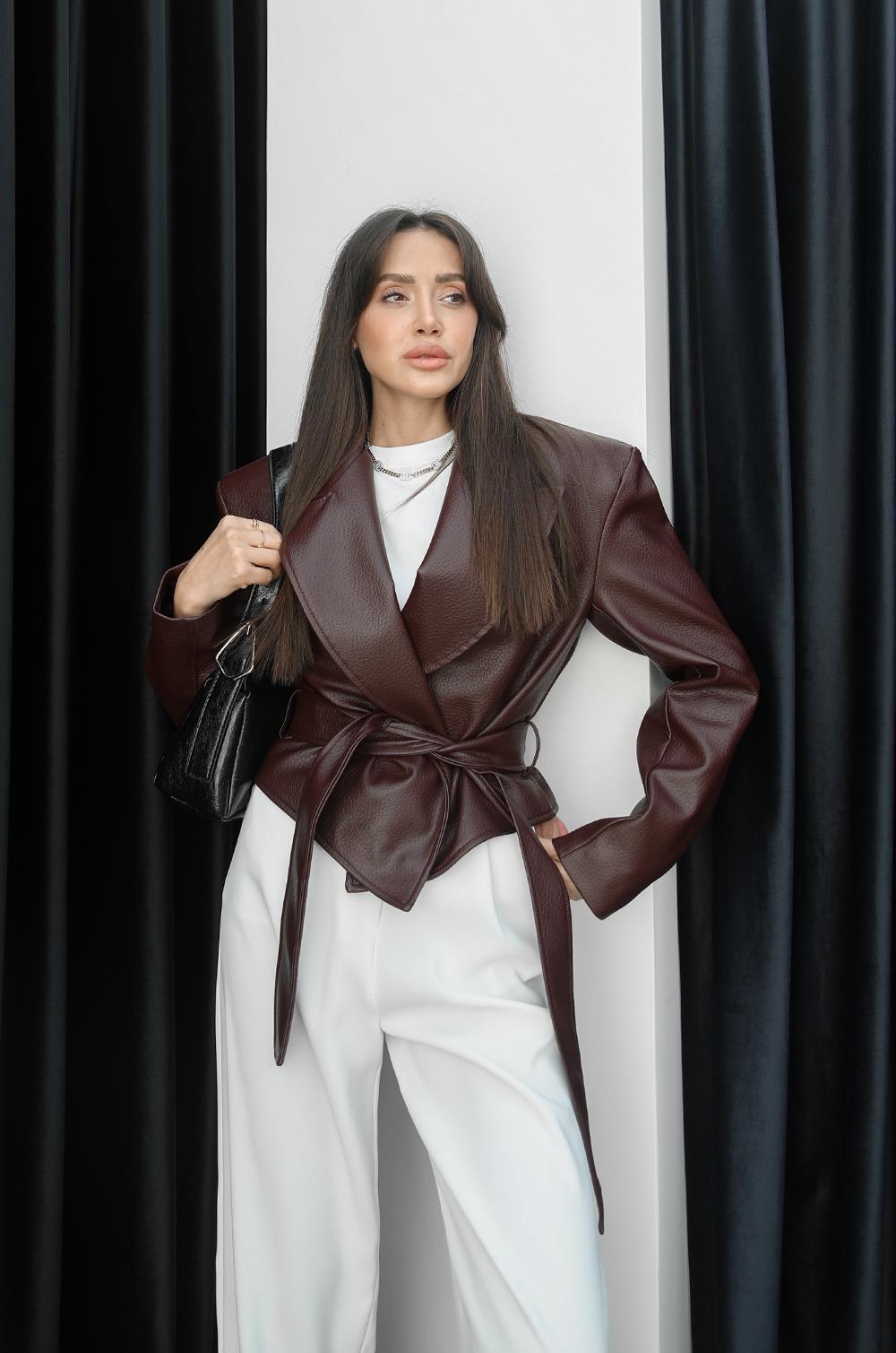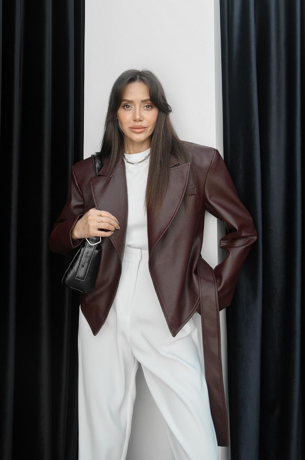 BORDO BELI BAĞLAMALI VATKALI DERI CEKET
