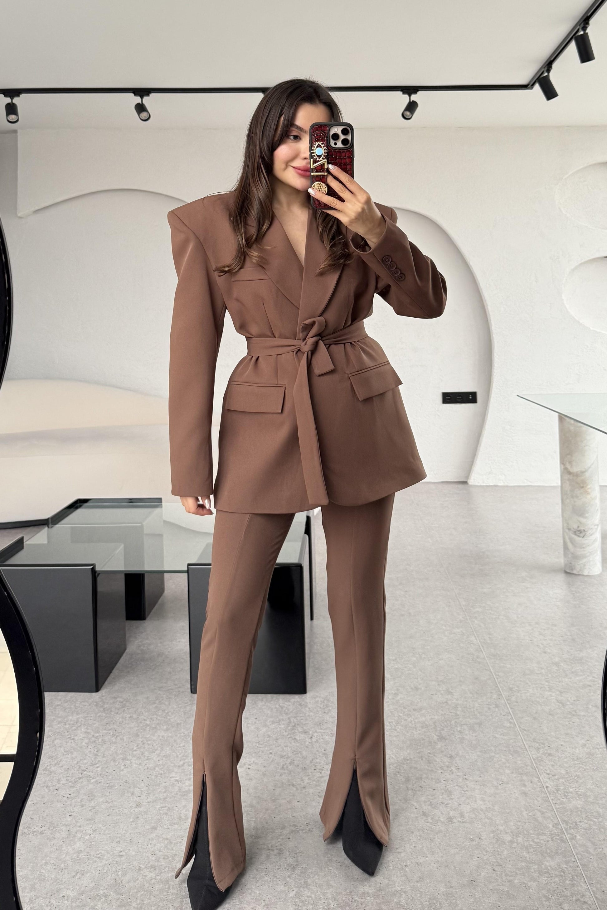 Bragen Acı Kahve Kuşaklı Takım