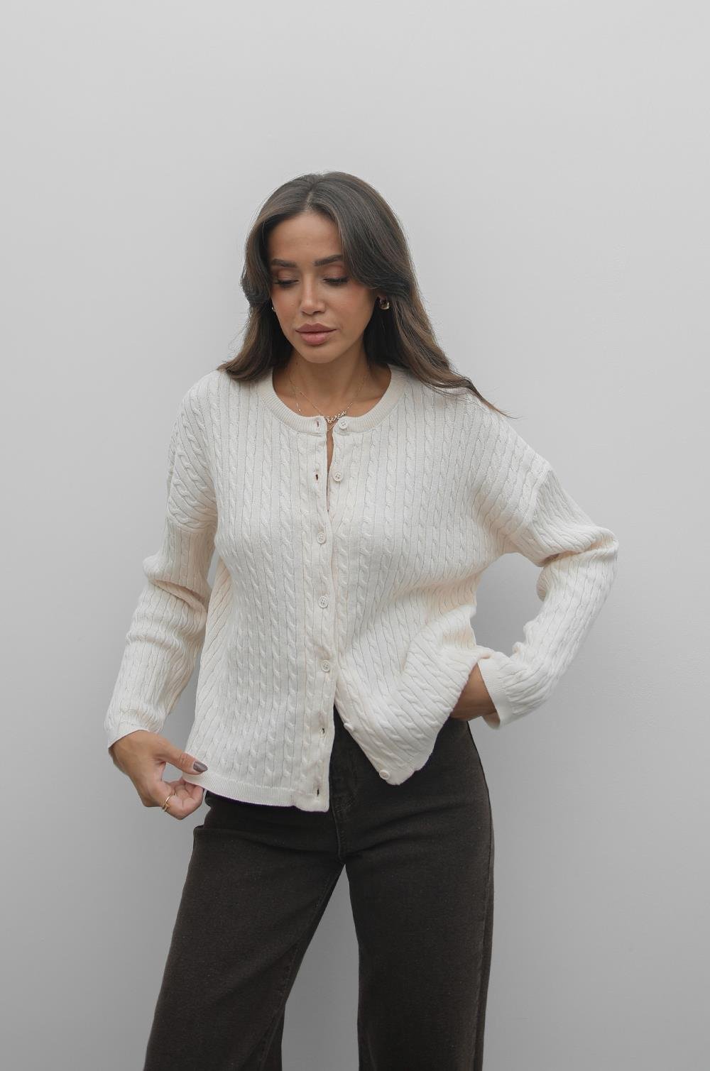 Bu hırka, konforla şıklığı buluştururken her kombinine sıcak bir dokunuş katar.