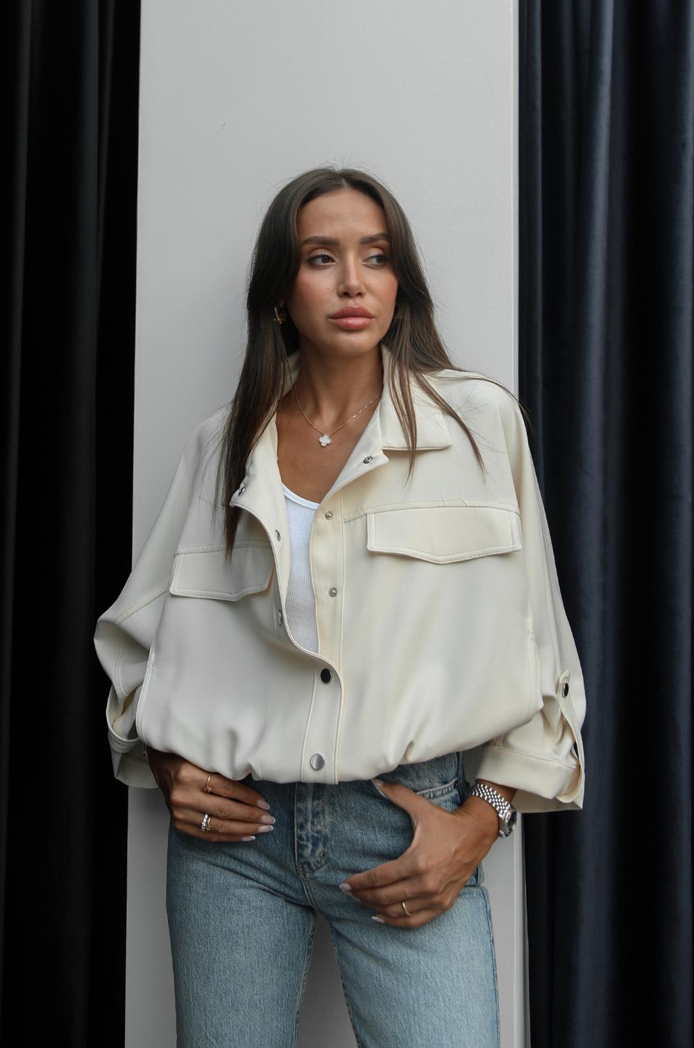 EKRU YARASA KOL ÇITÇIT DÜĞMELI CEKET
