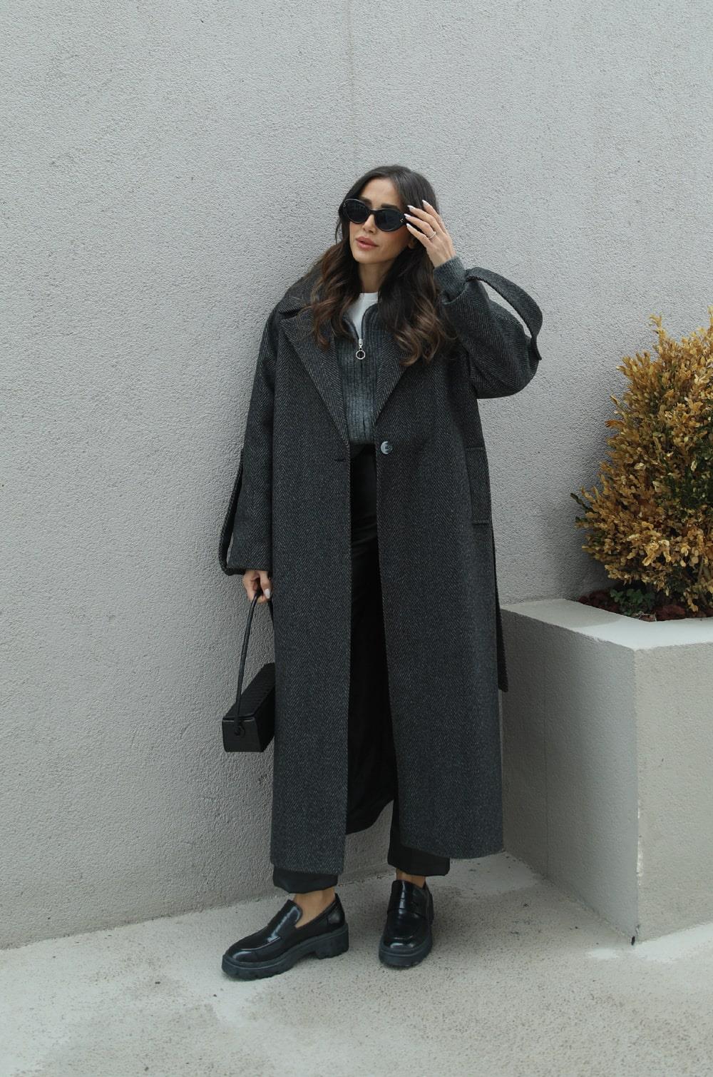 FÜME KOL DETAYLI DOKULU PREMIUM KABAN