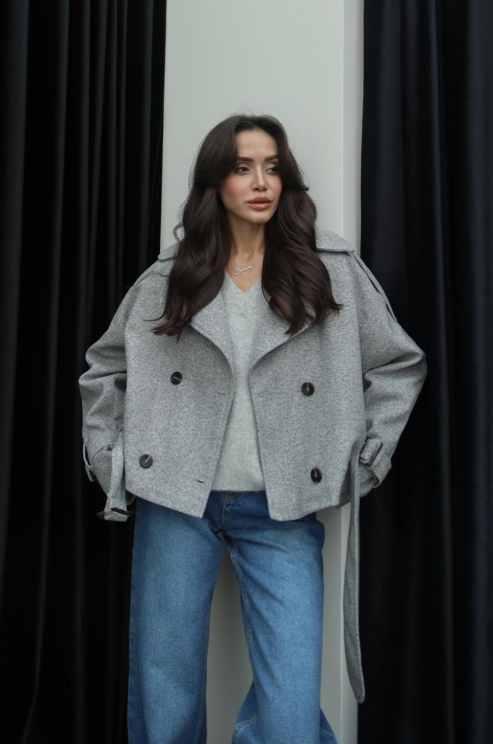 GRI ALTI KEMERLI KISA KAŞE KABAN