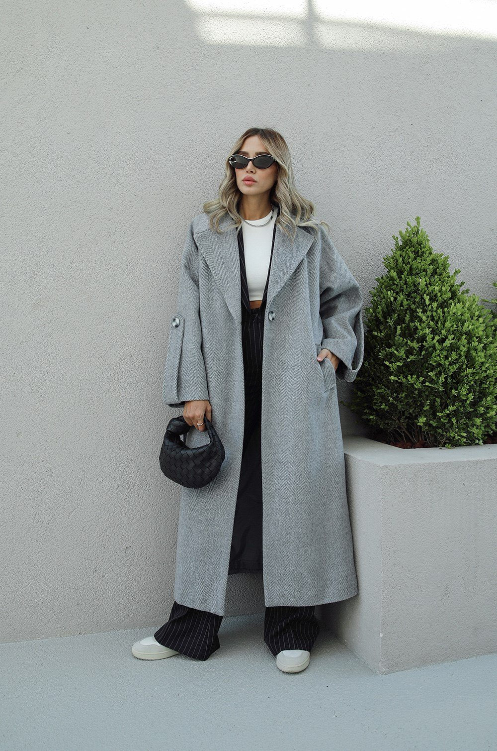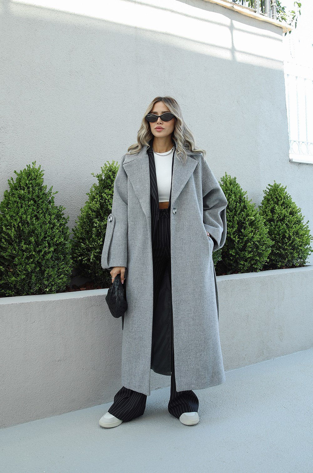 GRI KOL DETAYLI DOKULU PREMIUM KABAN modeliyle kış stiline sıcaklık ve zarafet kat! Yumuşak dokusu ve modern kesimiyle her kombinine uyum sağlar. Oversize style sevenler için mükemmel bir seçim.