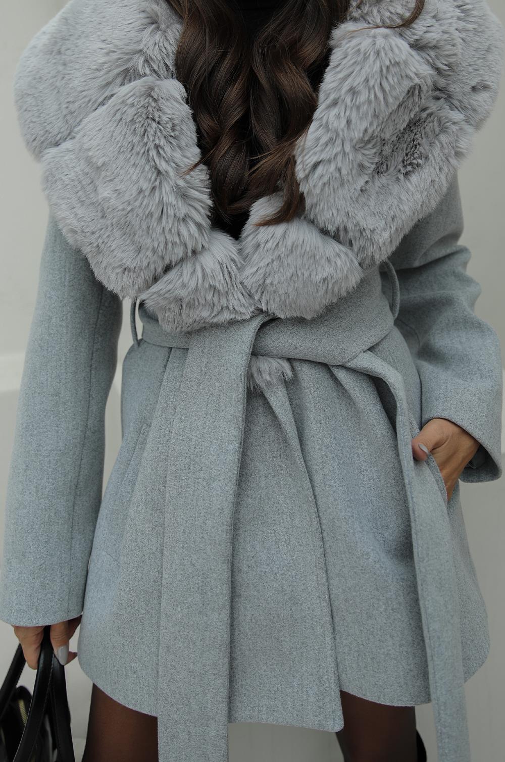 GRI OPULENT YAKASI KÜRKLÜ KUŞAKLI KABAN