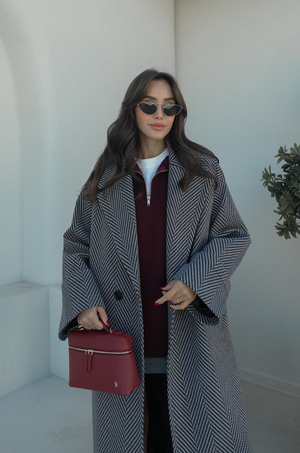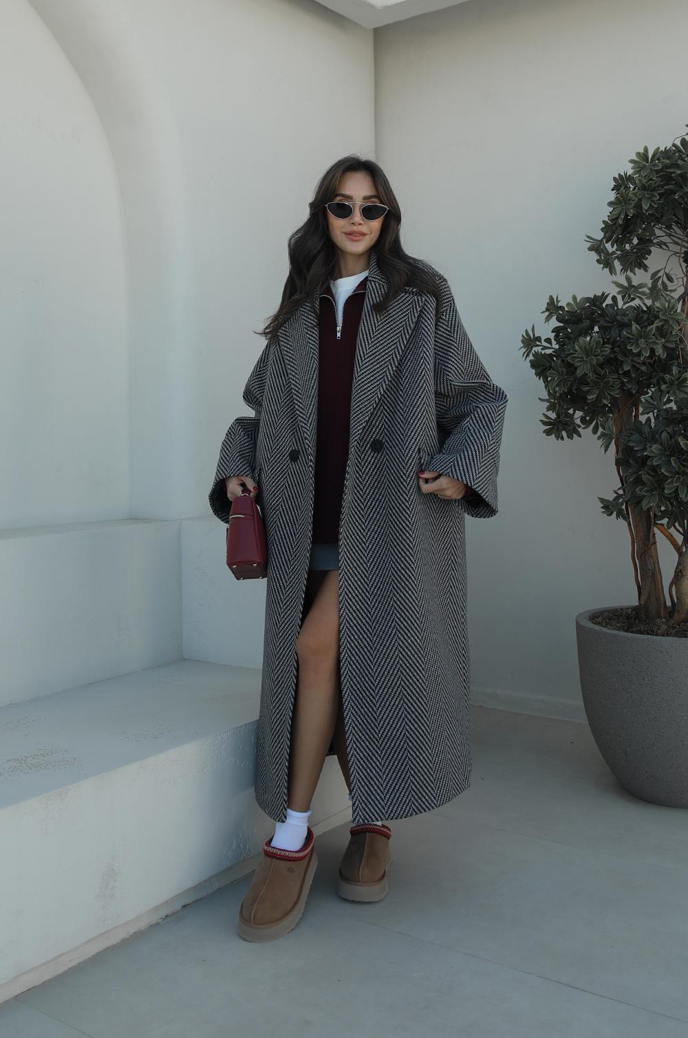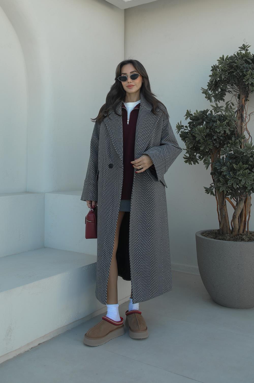 GRI SIYAH BALIKSIRTI DESENLI KABAN modeliyle kış stiline sıcaklık ve zarafet kat! Yumuşak dokusu ve modern kesimiyle her kombinine uyum sağlar. Oversize style sevenler için mükemmel bir seçim.