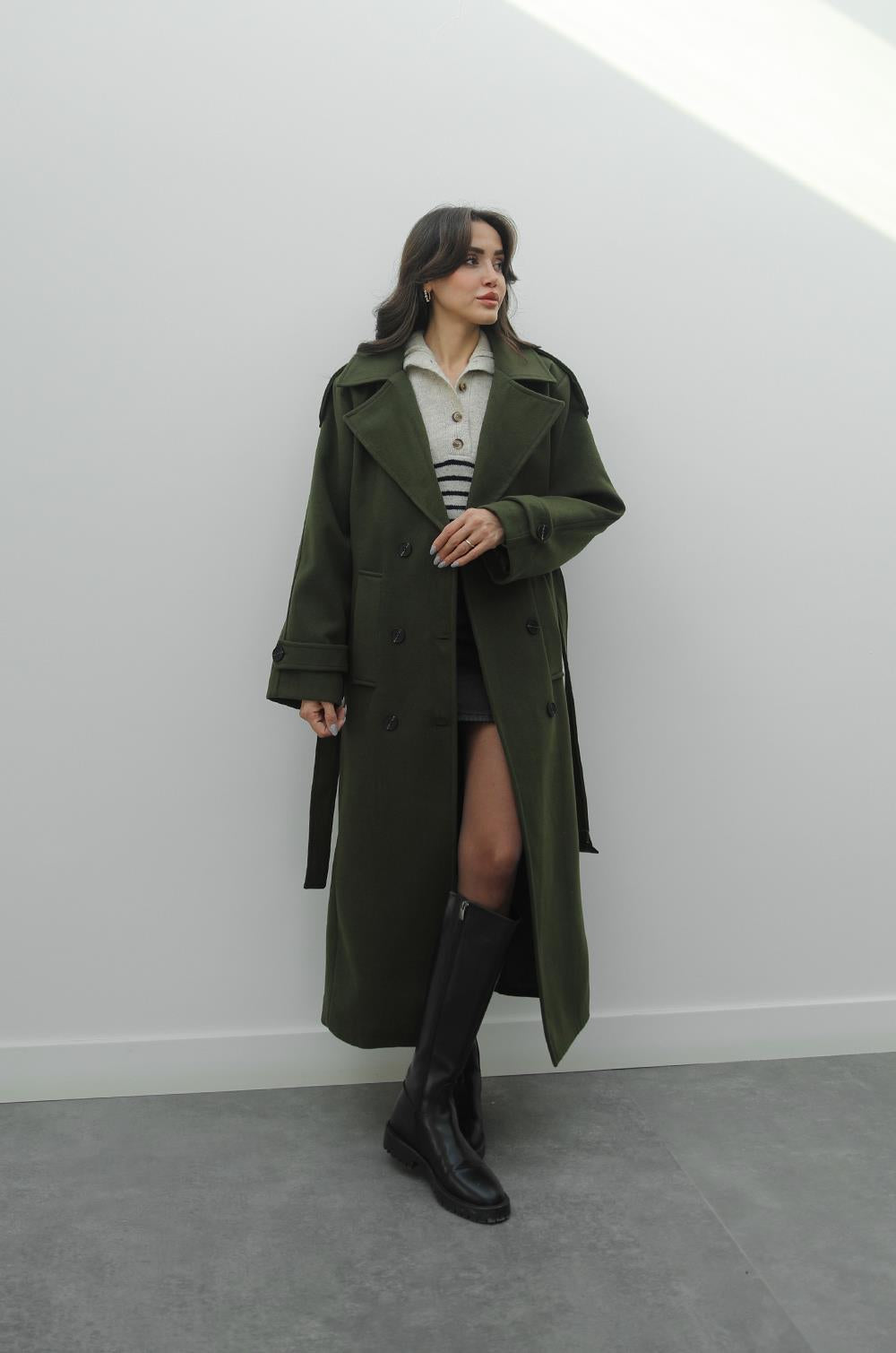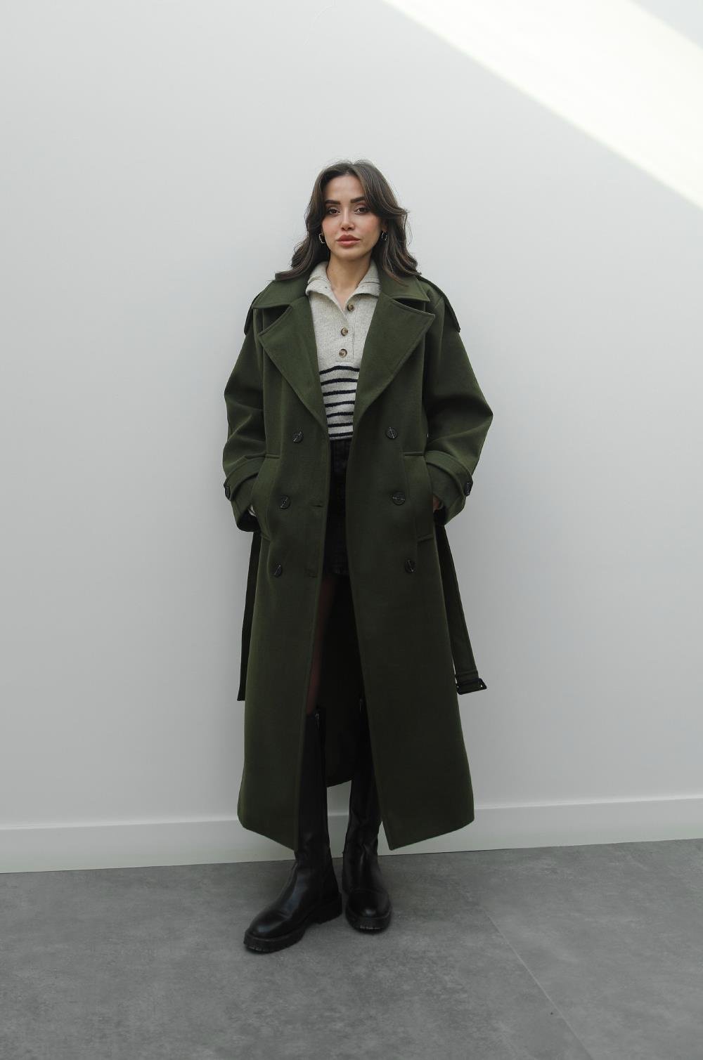 HAKI APOLET DETAYLI KUŞAKLI KABAN