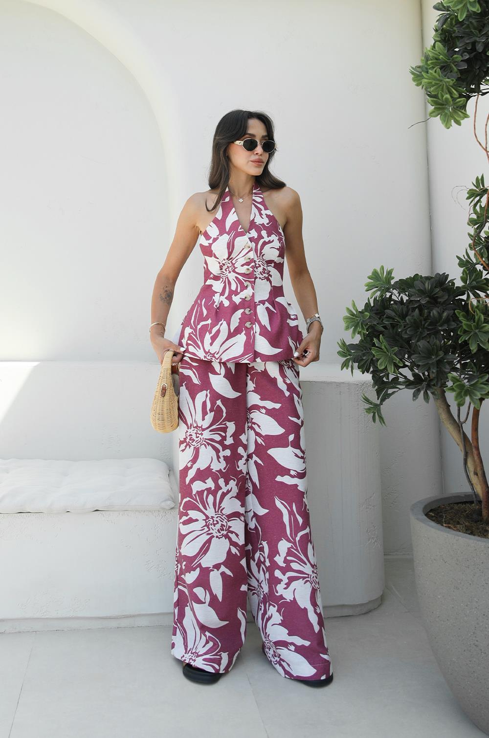 AÇIK BORDO BOYUNDAN GEÇMELI YELEK PANTOLON TAKIM