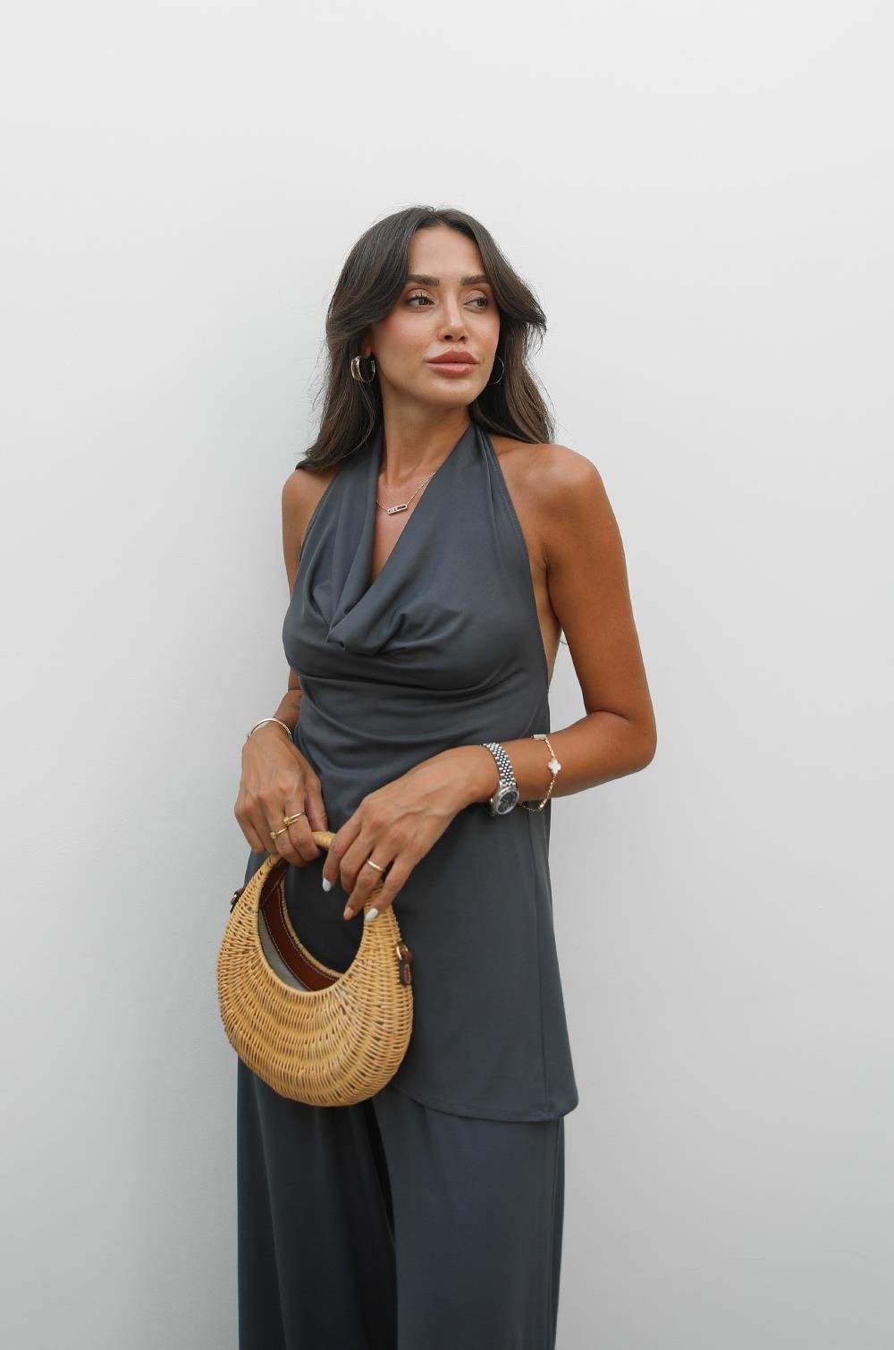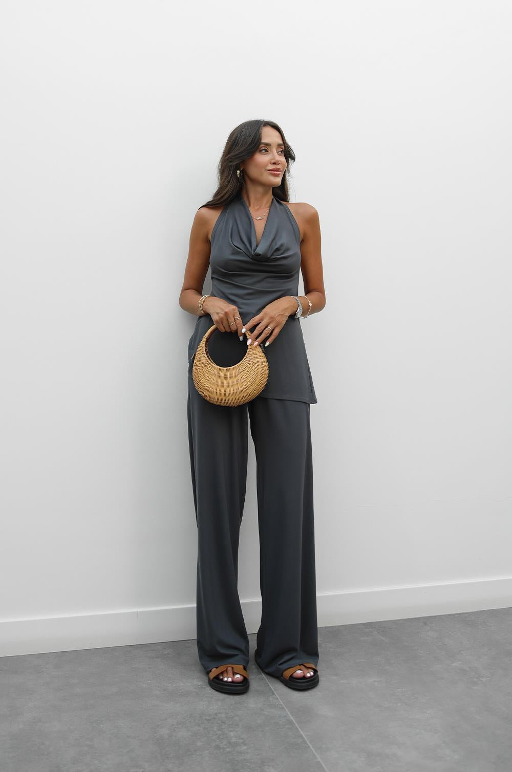 ANTRASIT DÖKÜMLÜ BLUZ PANTOLON MODAL TAKIM
