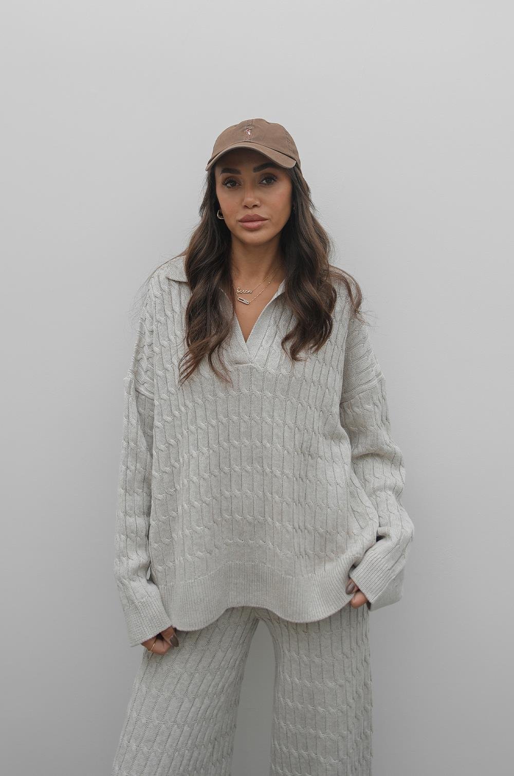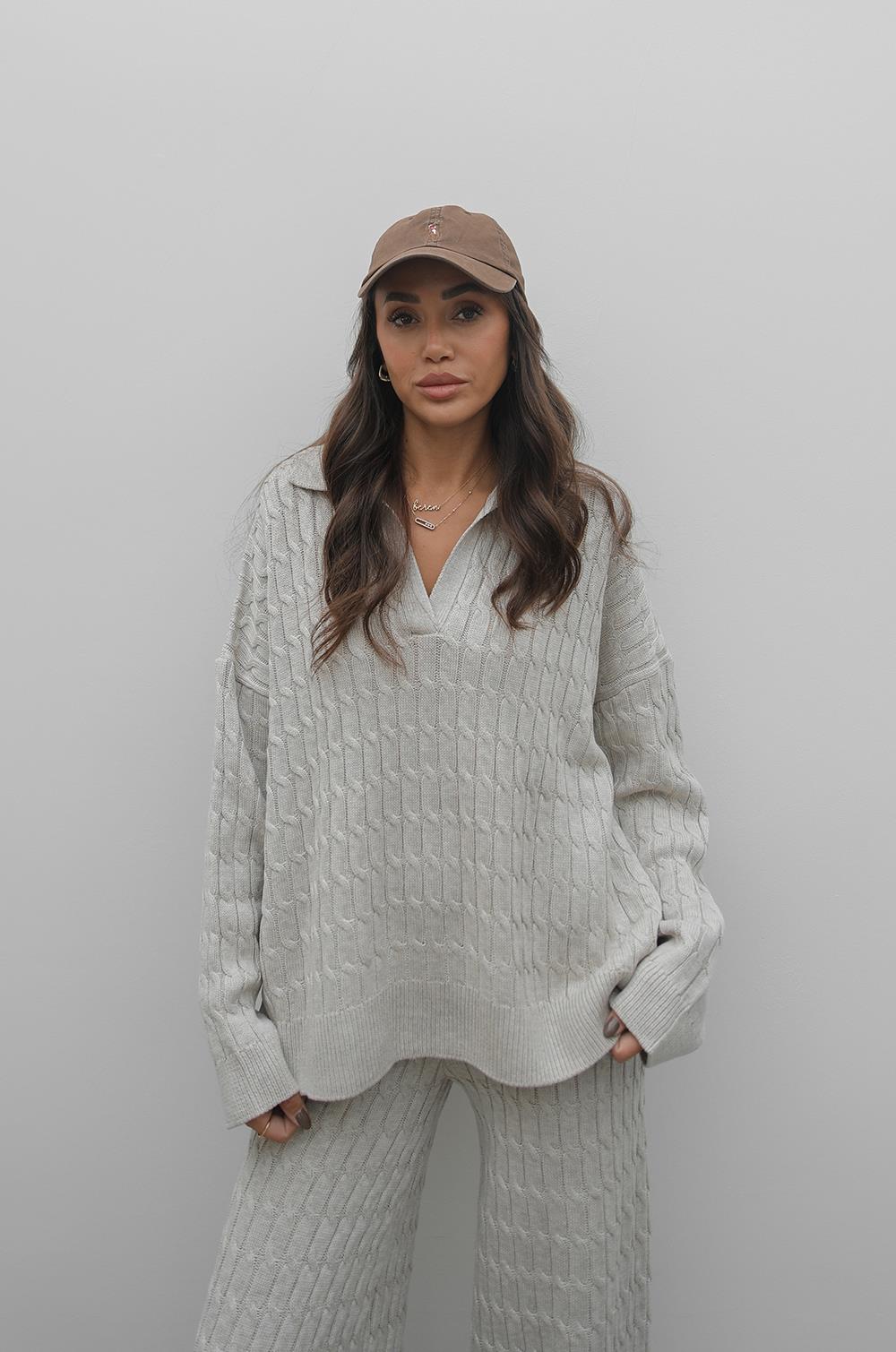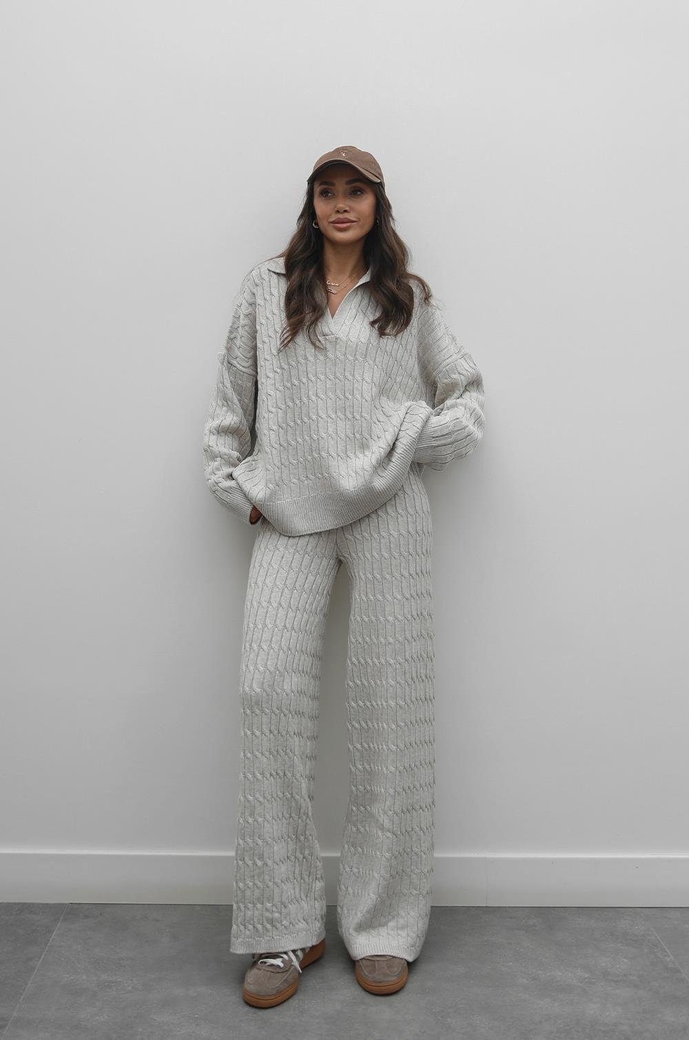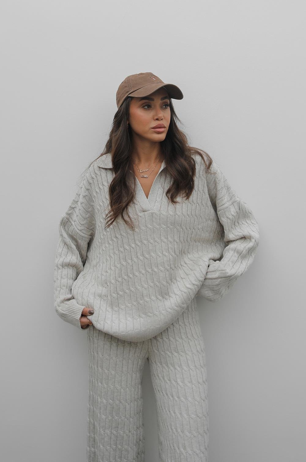 BEJ V YAKA SAÇ ÖRGÜ TRIKO TAKIM