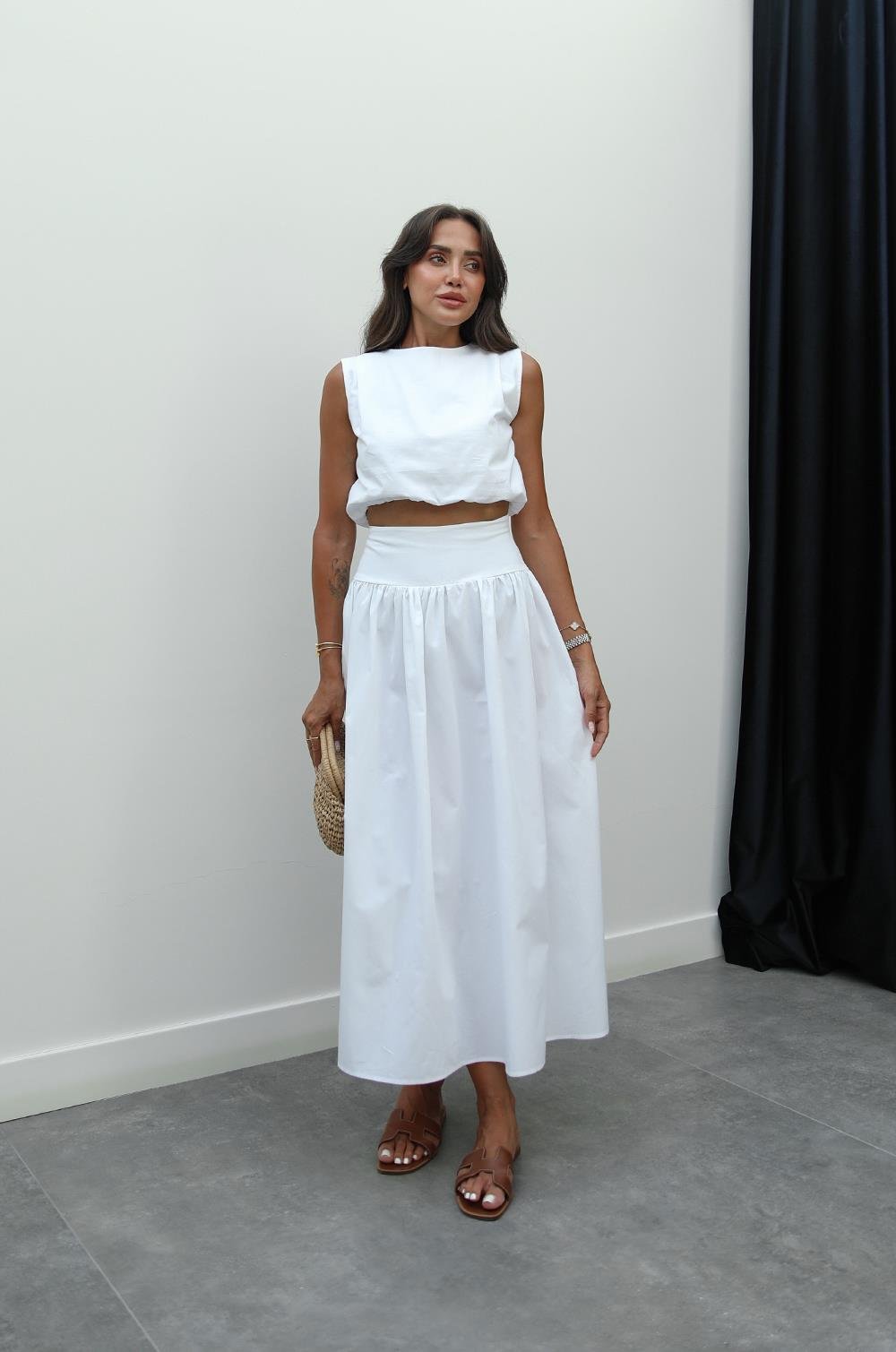 BEYAZ ALTI LASTIKLI CROP ETEK TAKIM