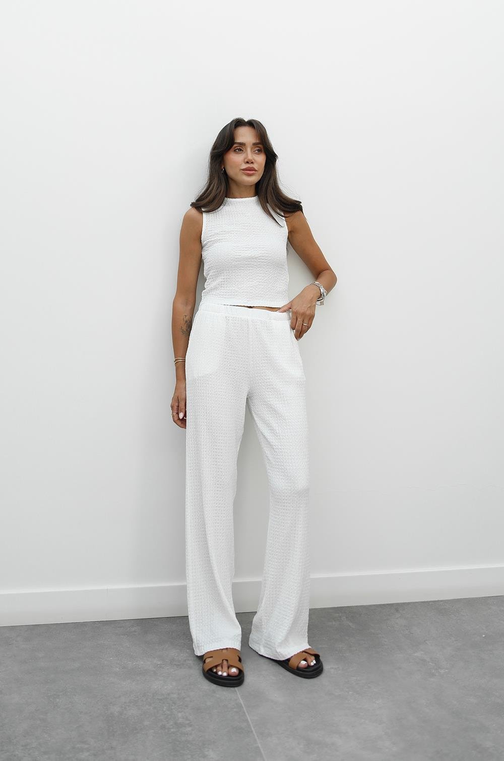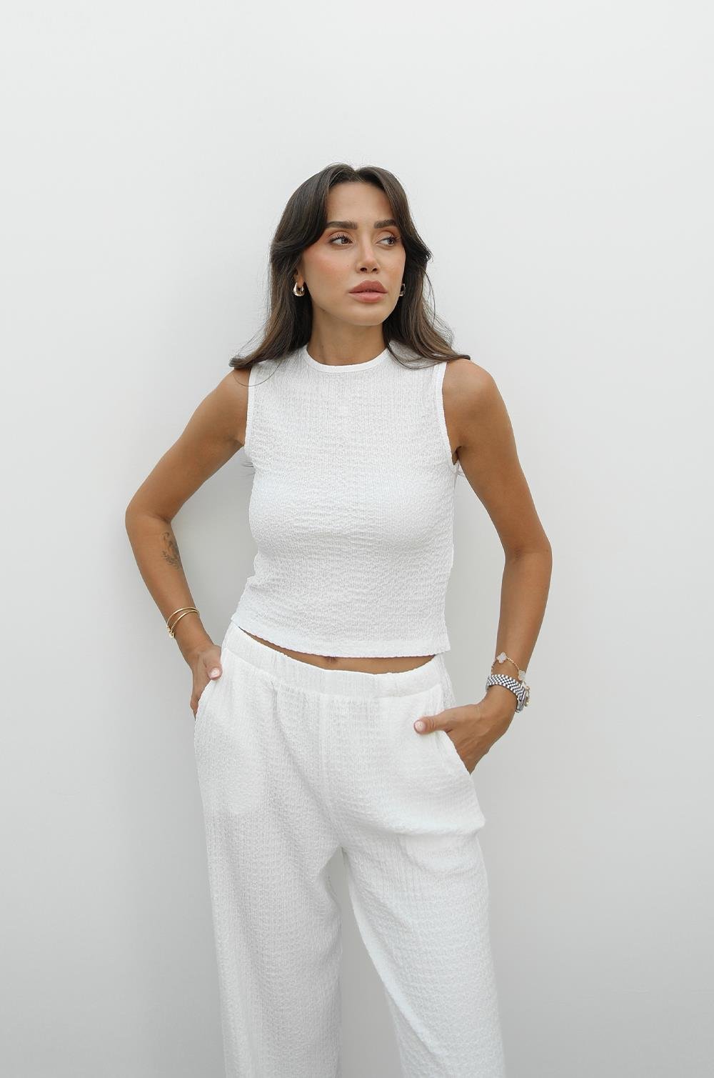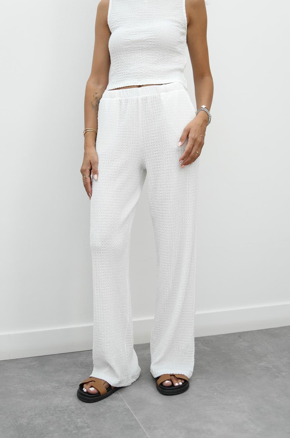 BEYAZ DOKULU BLUZ PANTOLON TAKIM