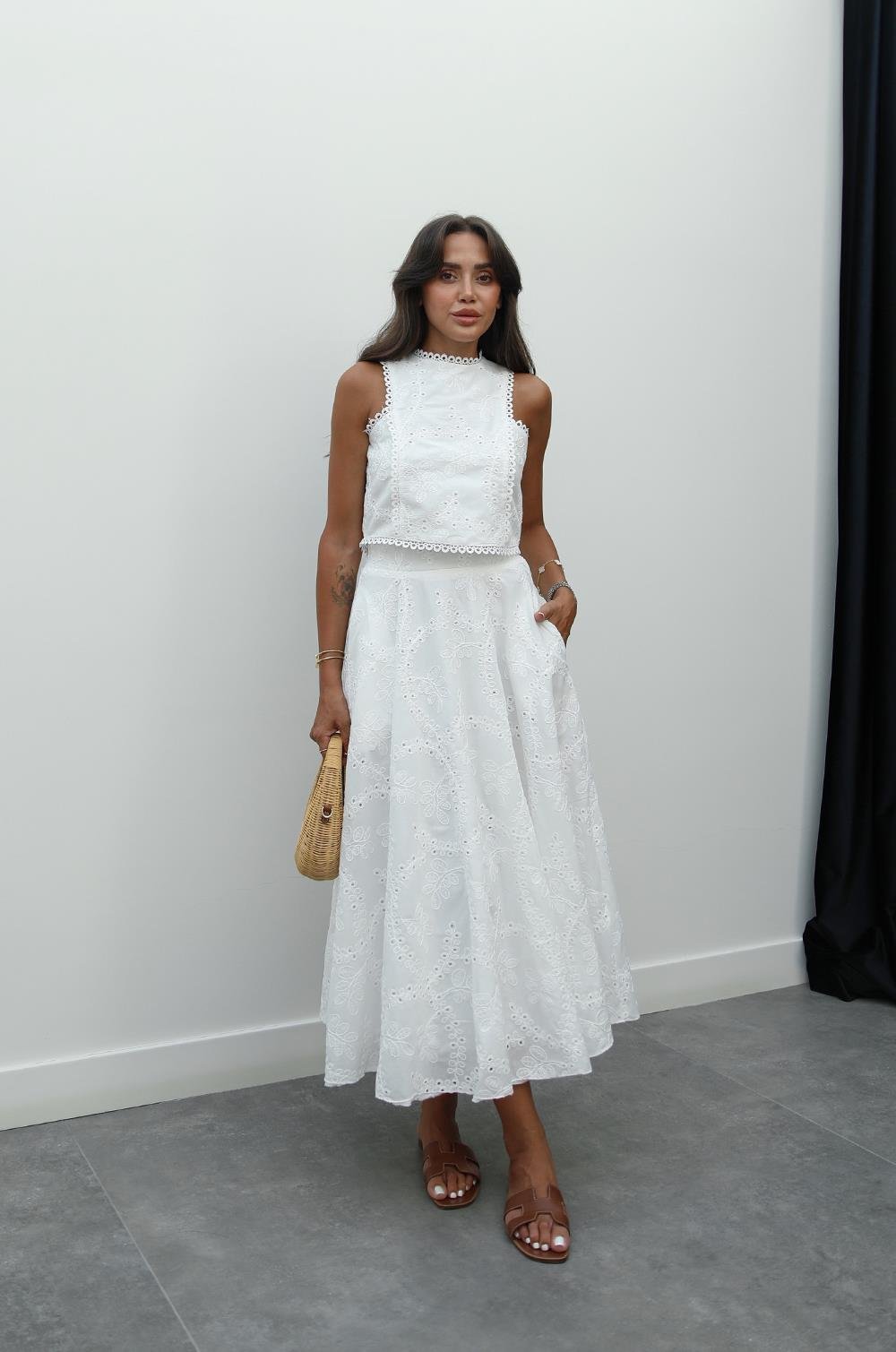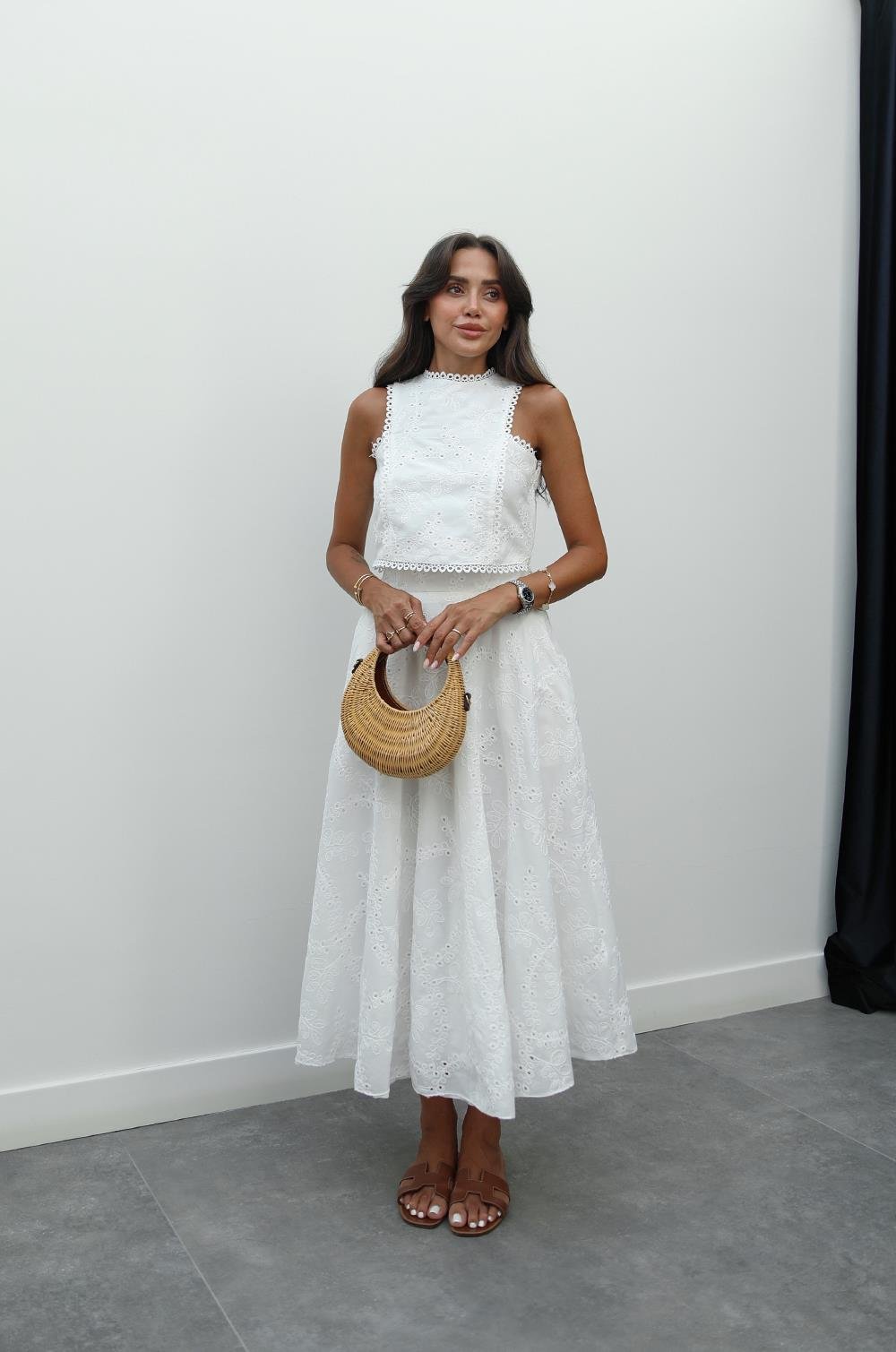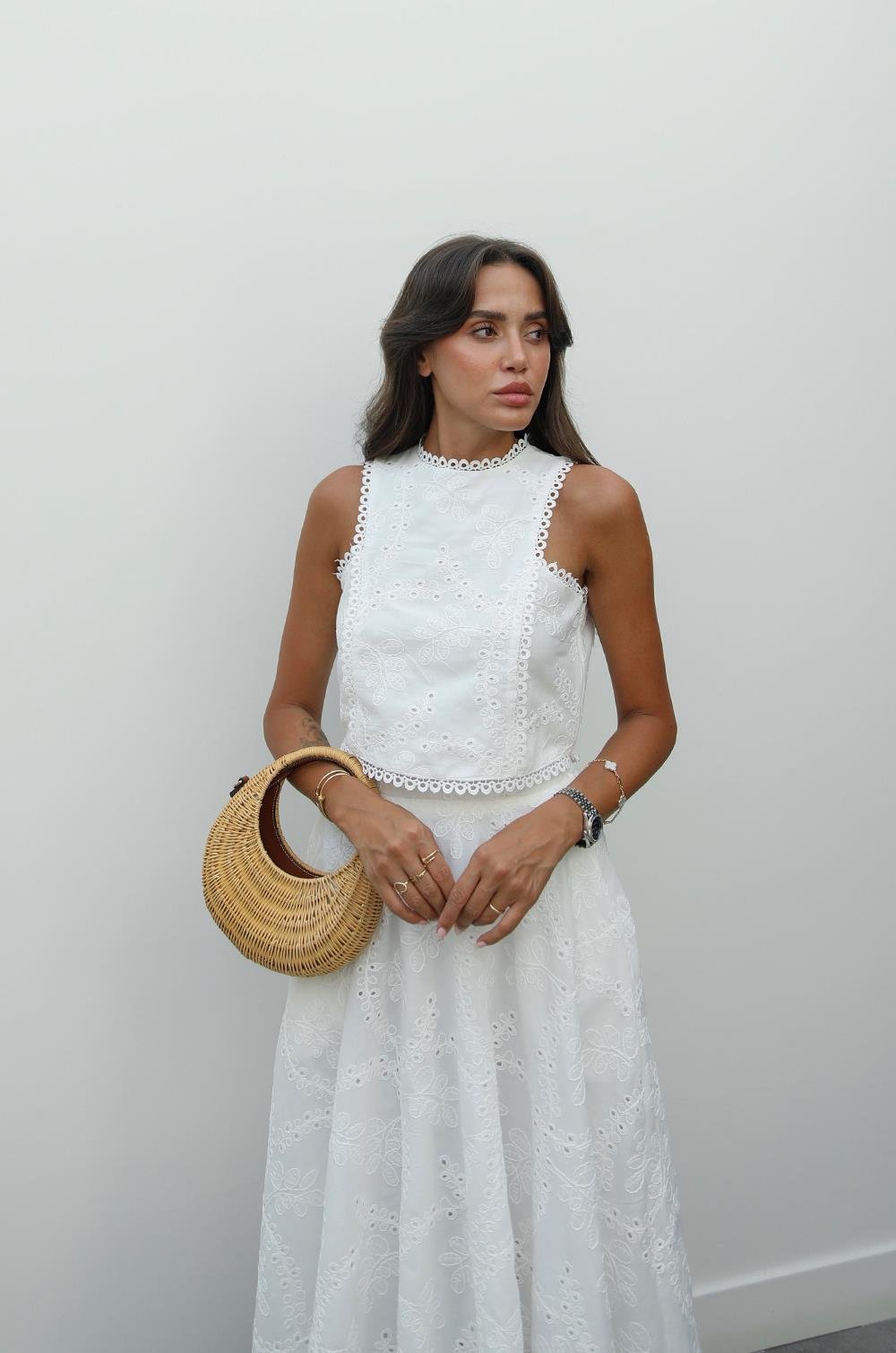BEYAZ FISTO İŞLEMELI BLUZ ETEK TAKIM