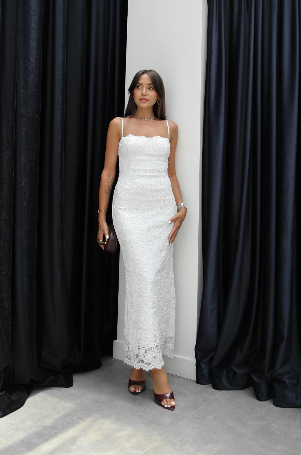 BEYAZ KULPLU DANTELLI ASKILI ELBISE
