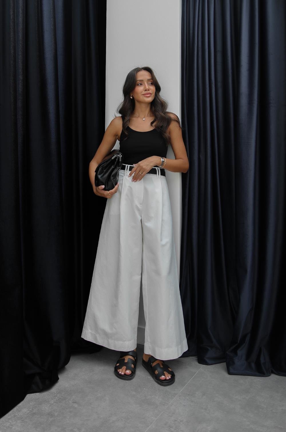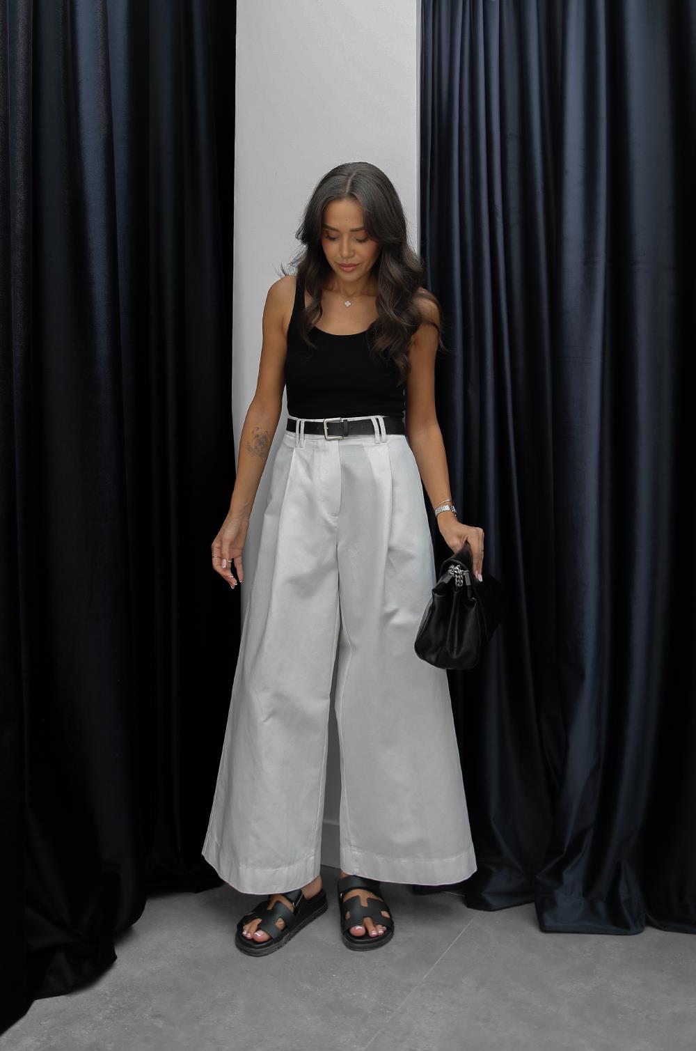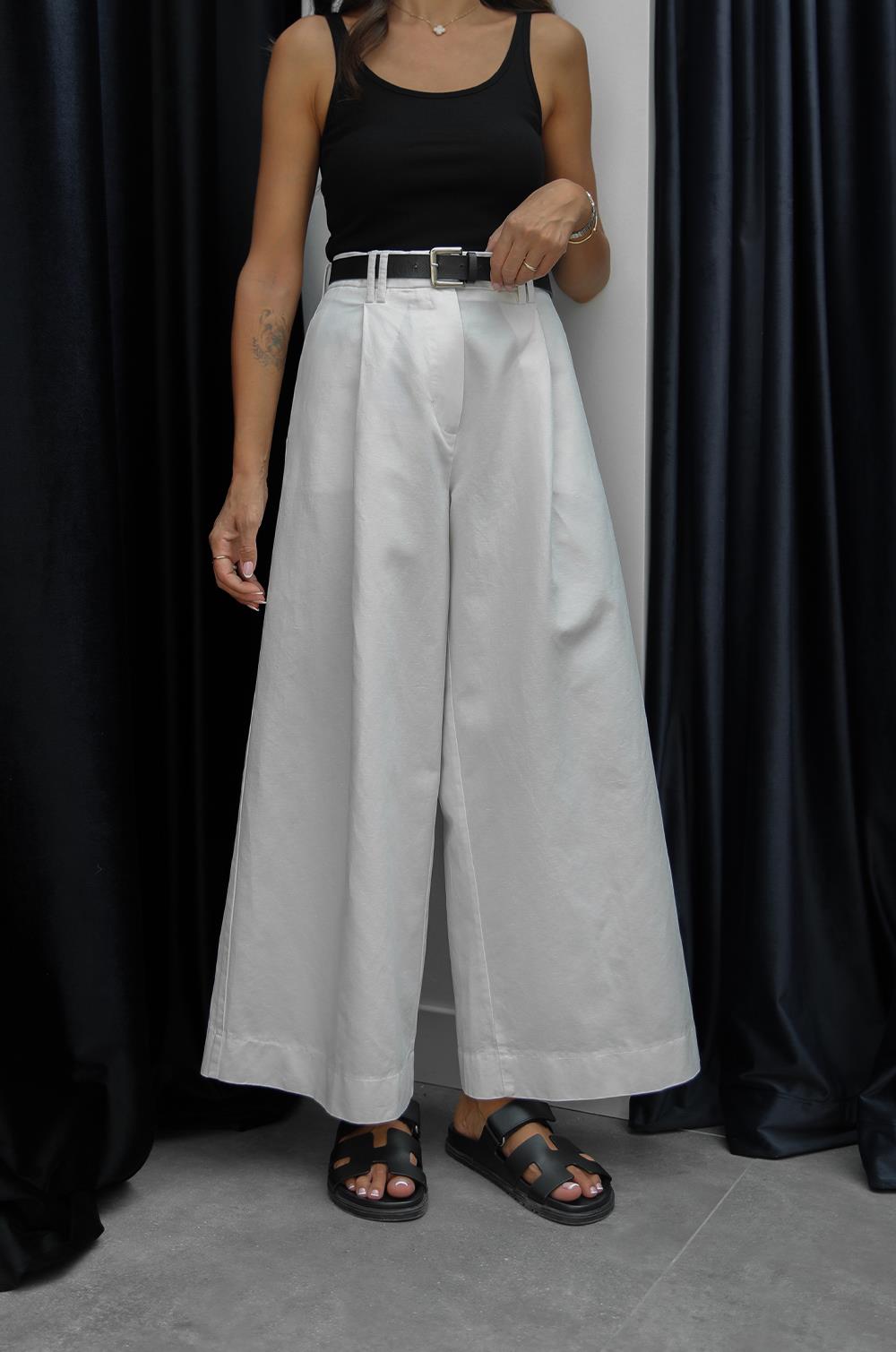 BEYAZ PILILI GENIŞ PAÇA PANTOLON