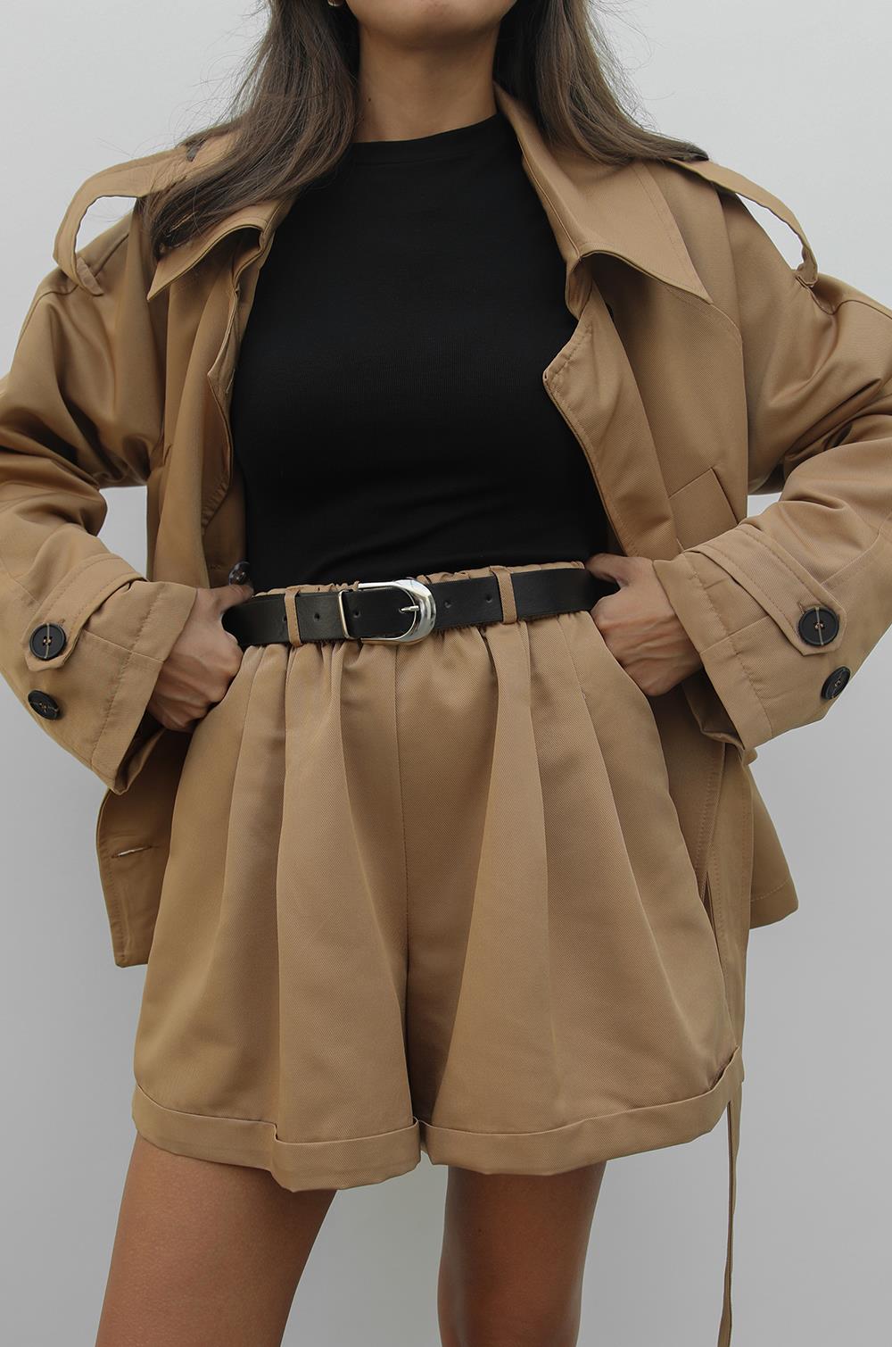CAMEL ELLA TRENÇKOT KEMERLI ŞORT TAKIM