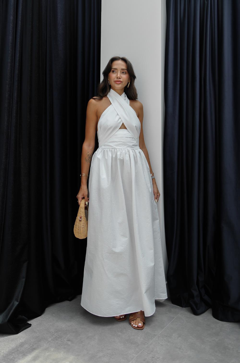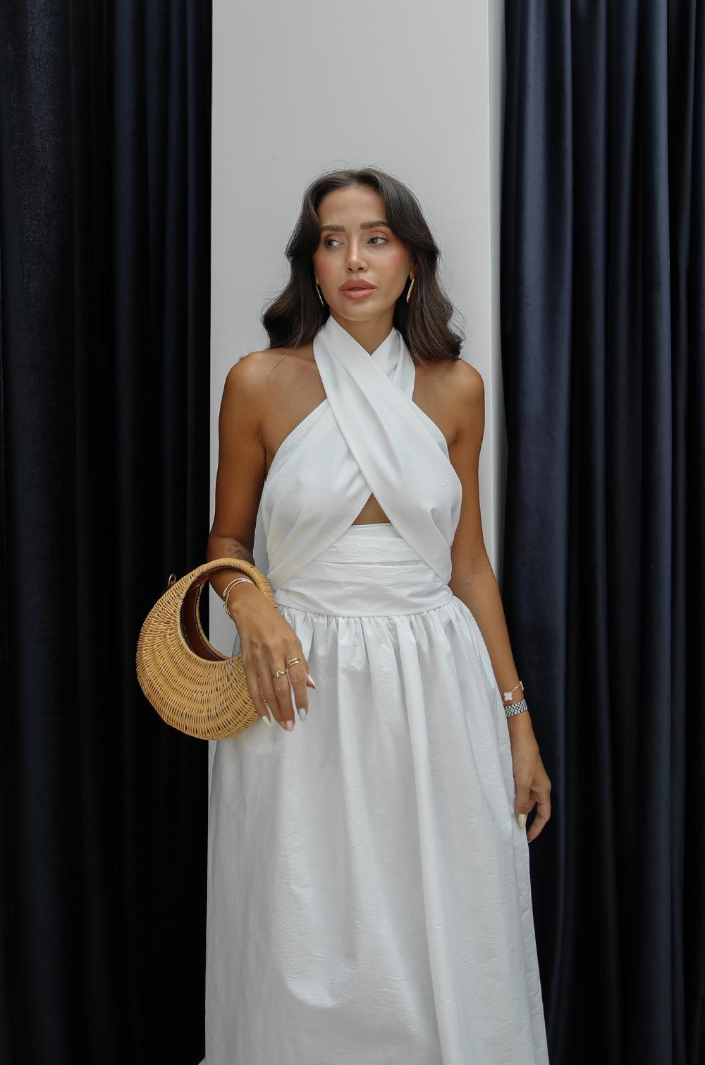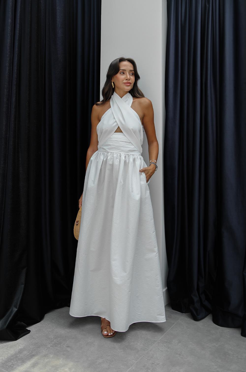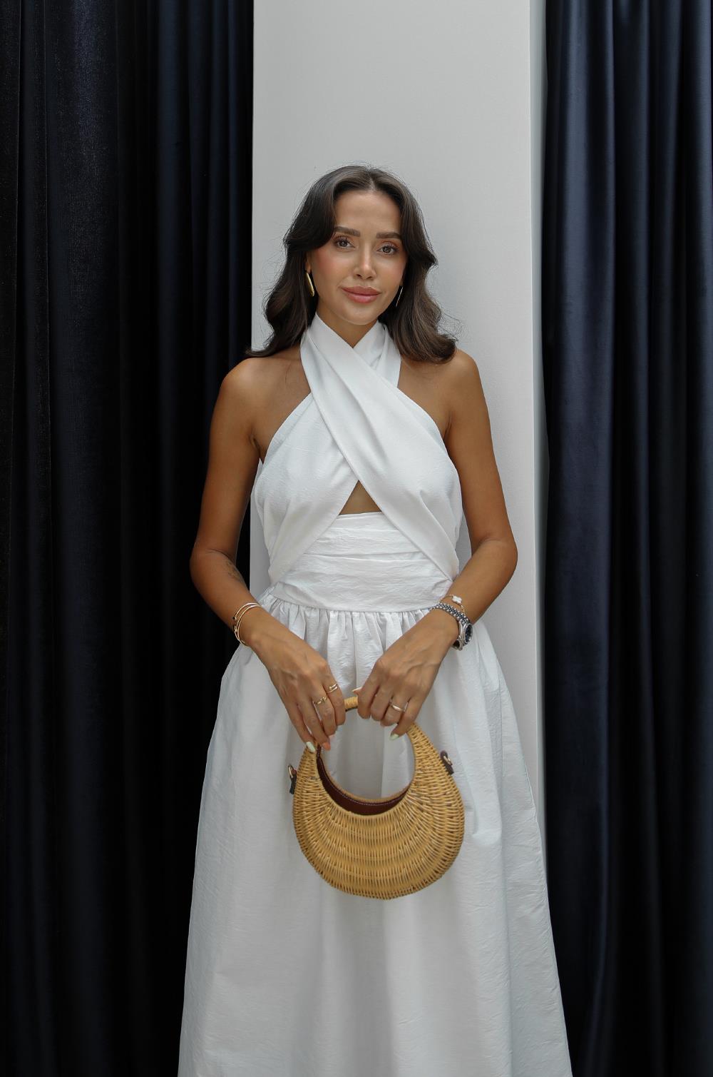 EKRU CRISS BOYUNDAN BAĞLAMALI ELBISE