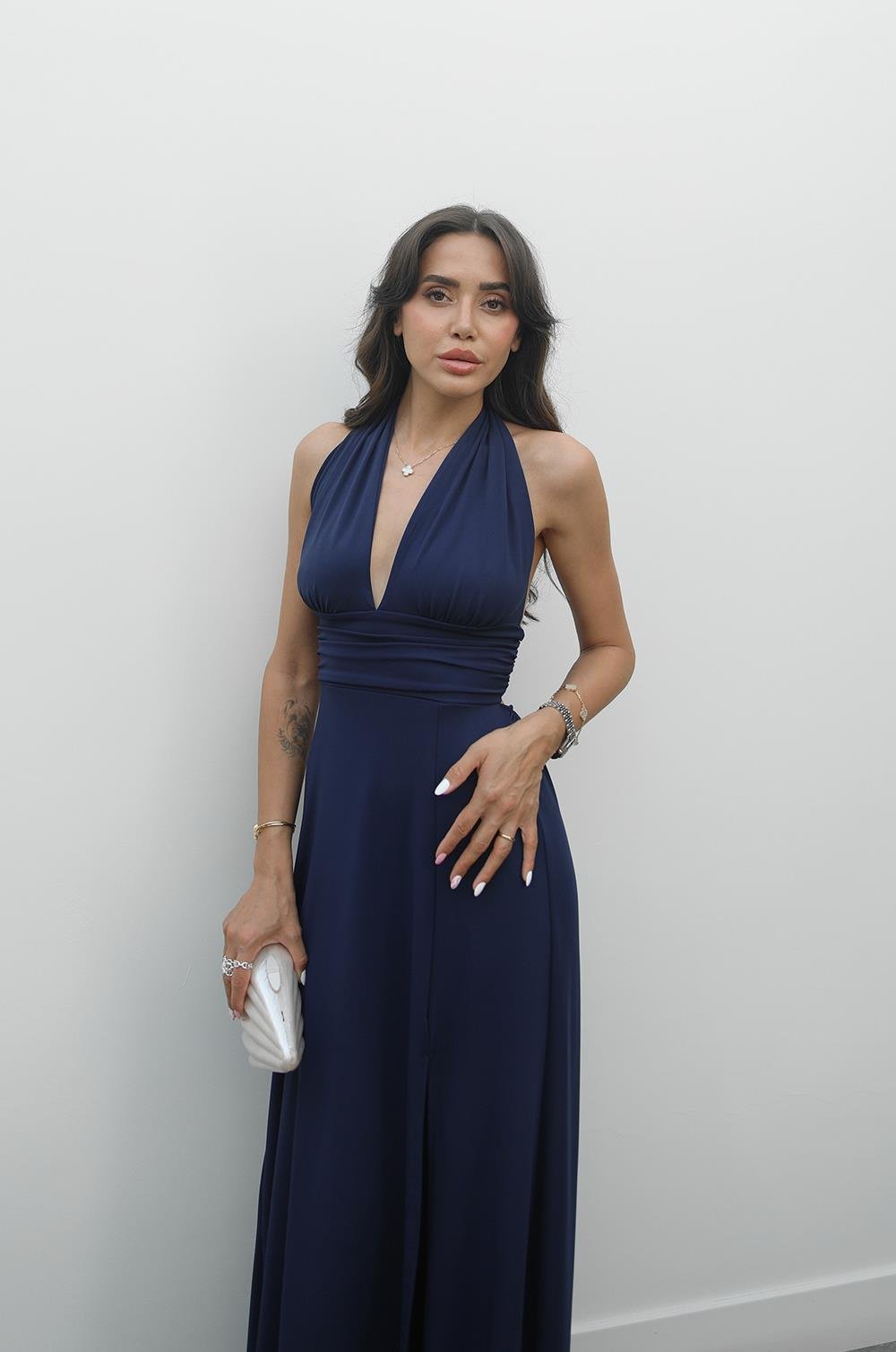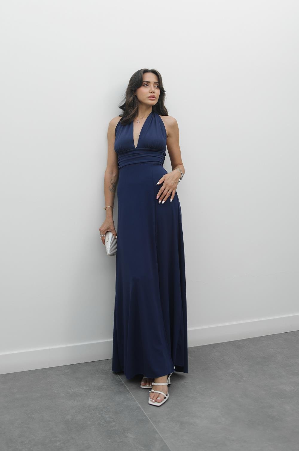 LACIVERT BOYUNDAN BAĞLAMALI ELBISE