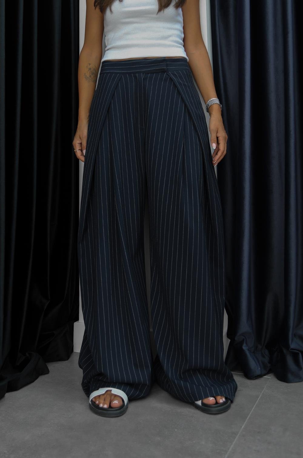 LACIVERT ÇIZGILI DÜŞÜK BEL PANTOLON
