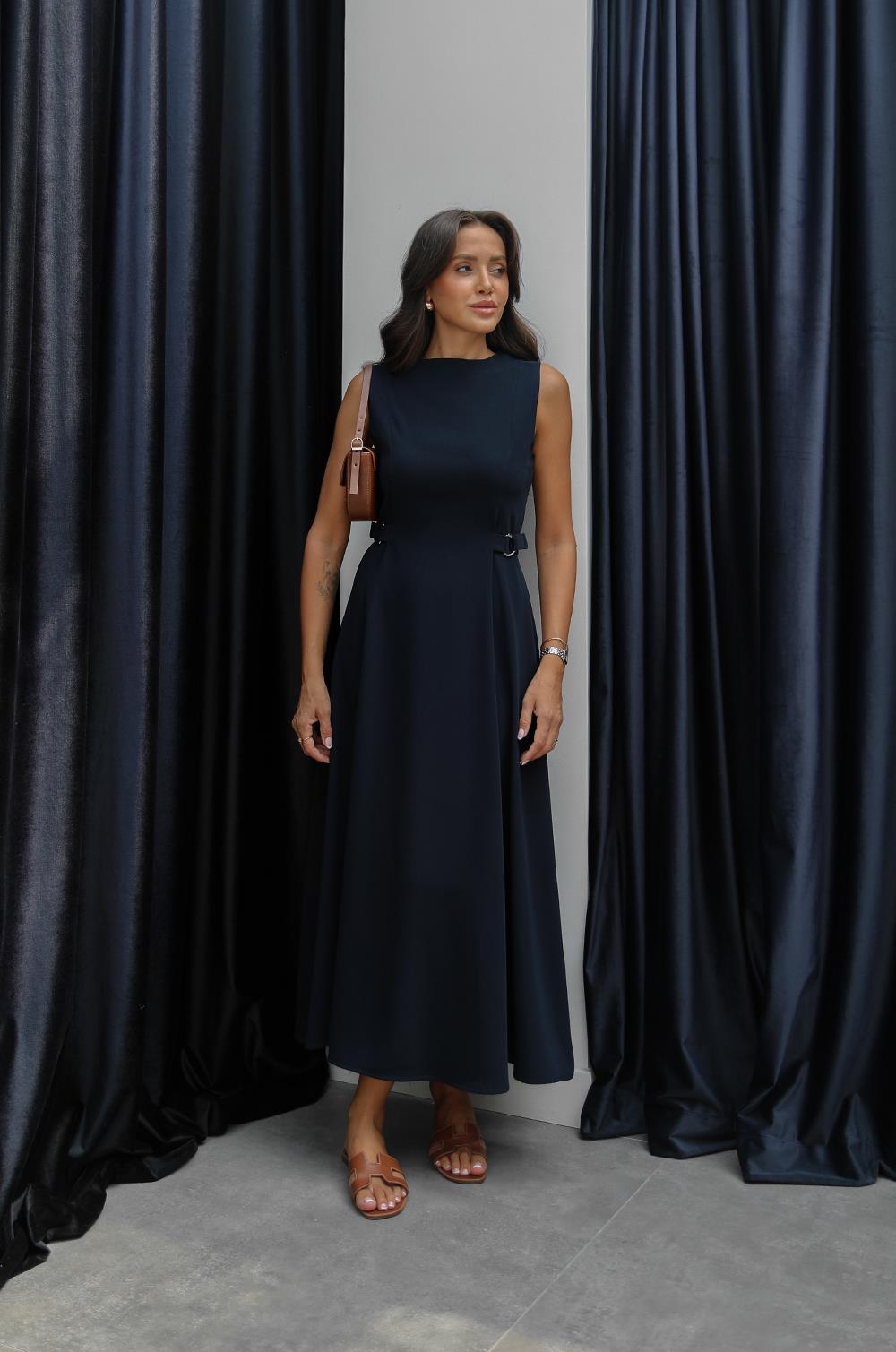 LACIVERT PARÇALI KEMER DETAYLI ELBISE