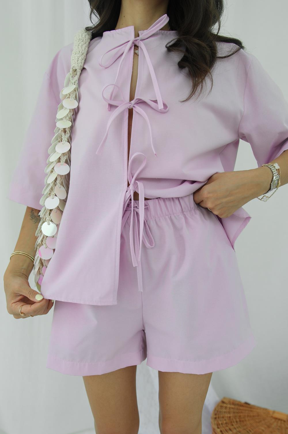 LILA MASAI BAĞLAMALI GÖMLEK ŞORT TAKIM