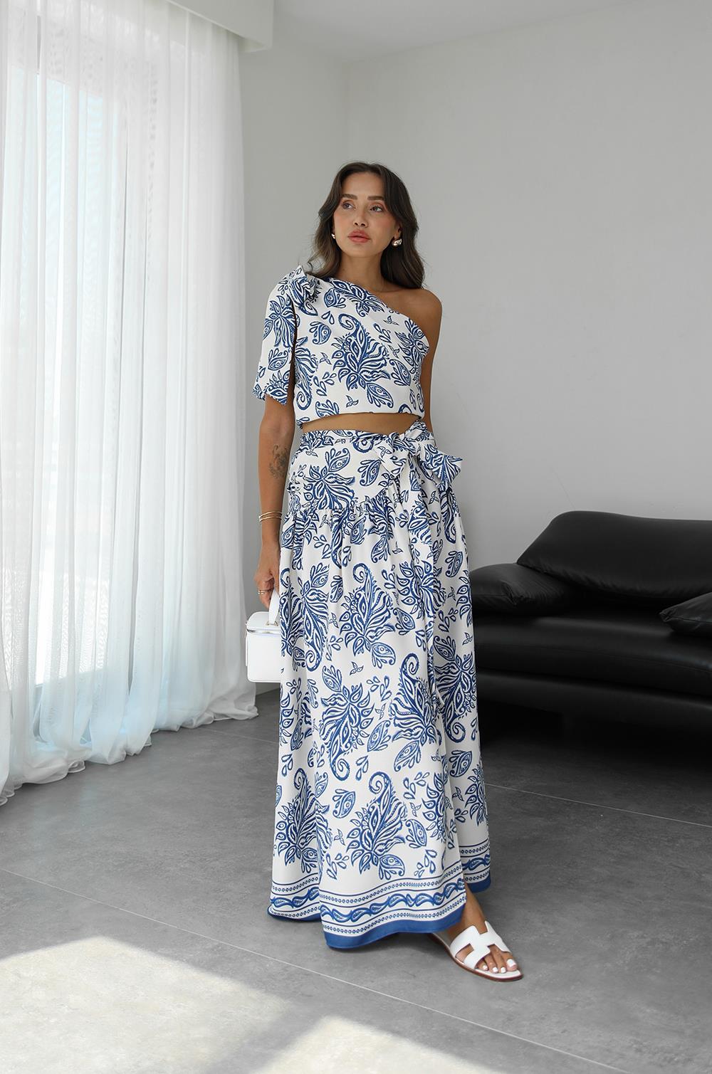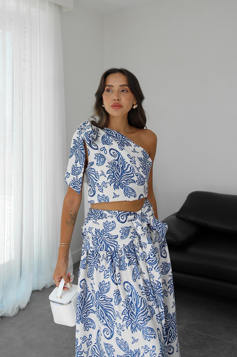 MAVI PAISLEY DESENLI SATEN TAKIM