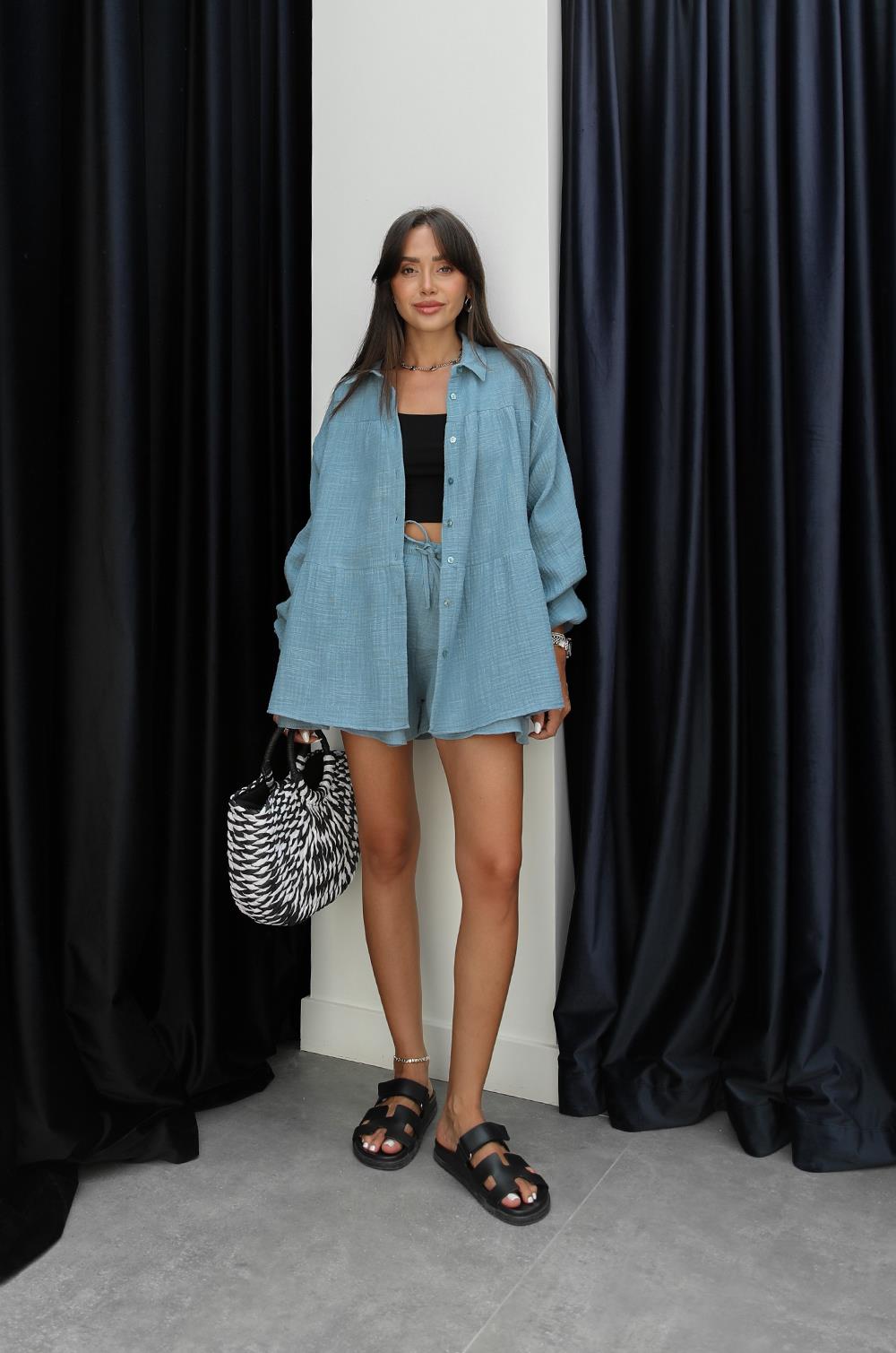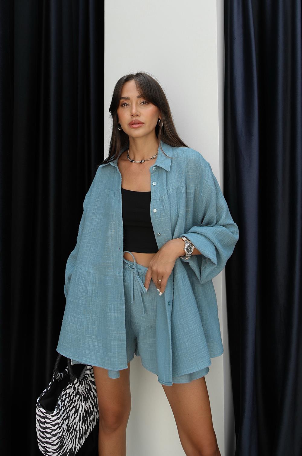 MAVI PLATT GÖMLEK ŞORT MÜSLIN TAKIM