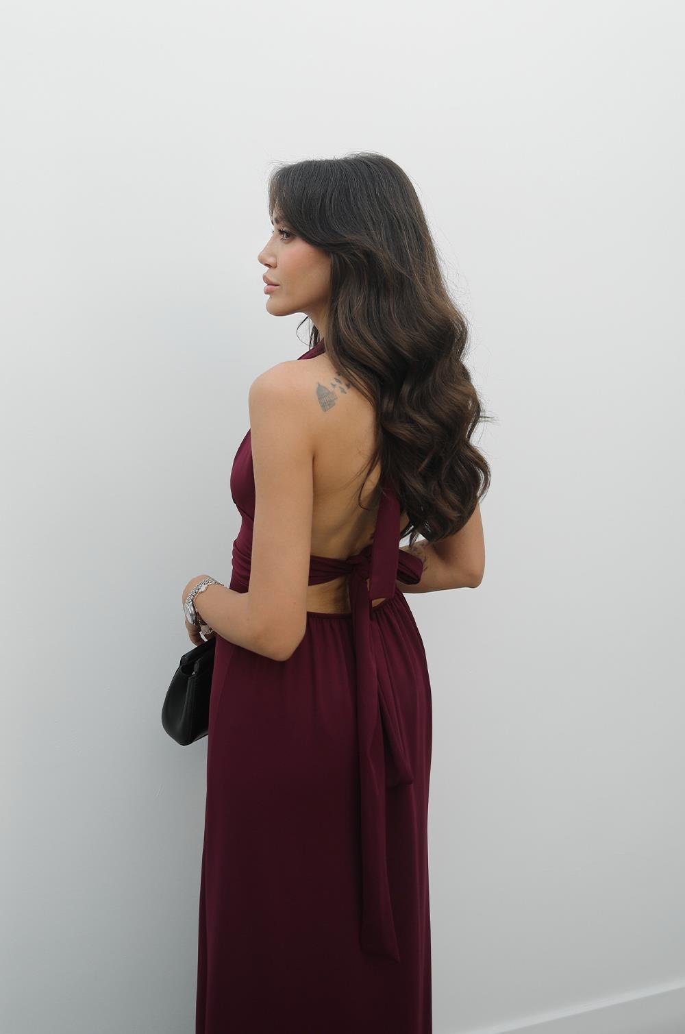 MÜRDÜM BOYUNDAN BAĞLAMALI ELBISE