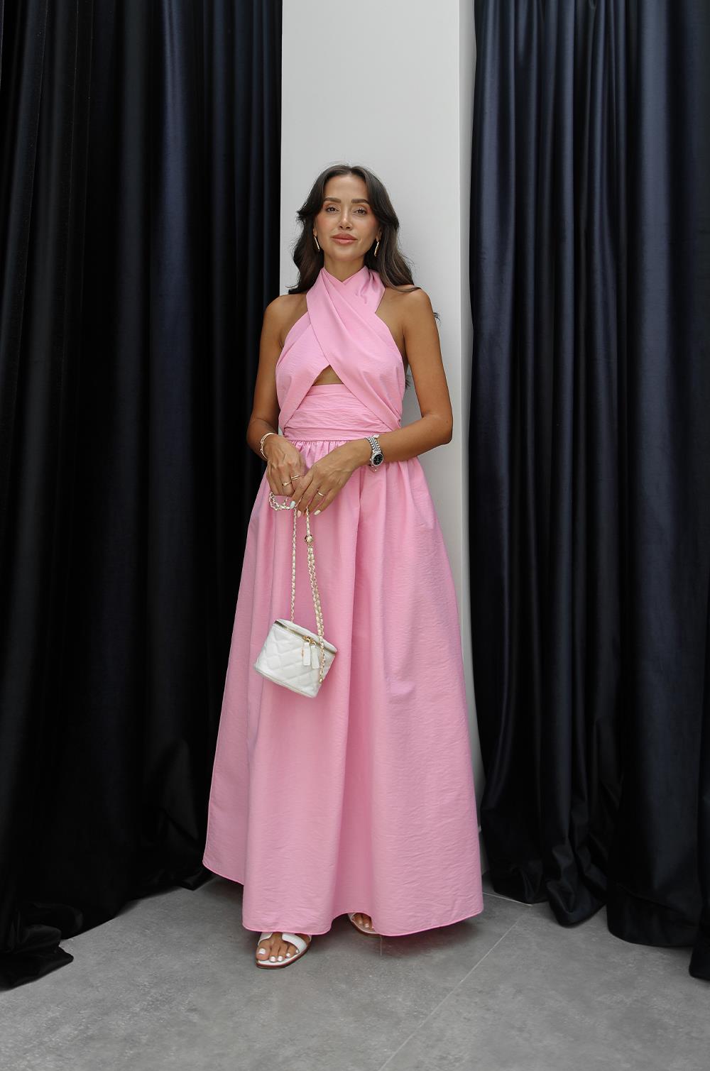 PEMBE CRISS BOYUNDAN BAĞLAMALI ELBISE