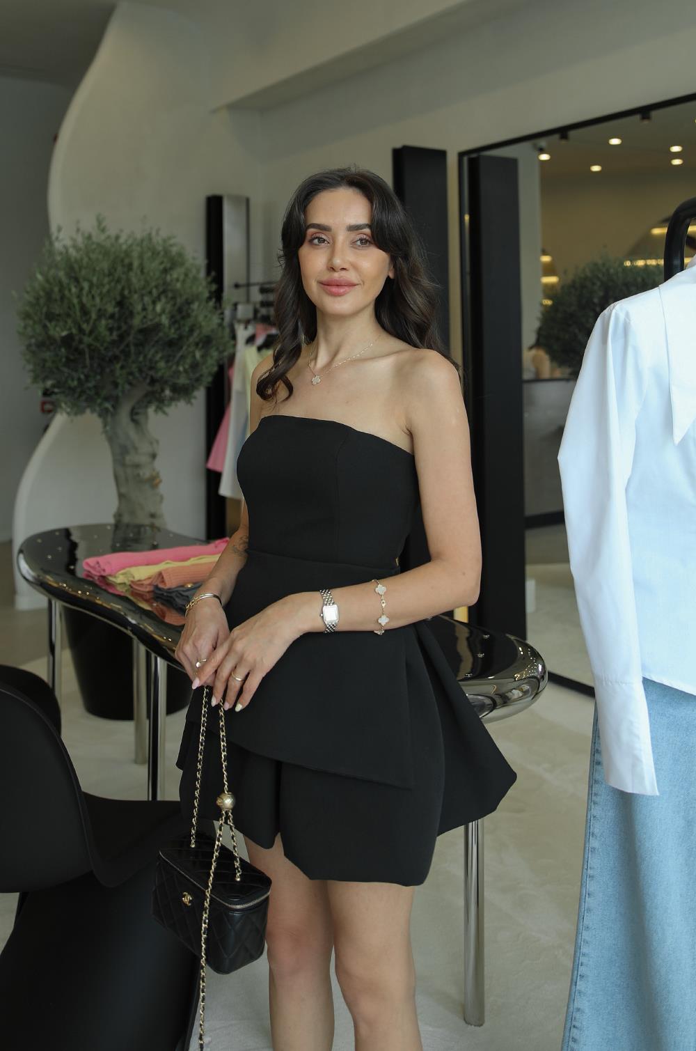 SIYAH ALTI BALON STRAPLEZ ELBISE
