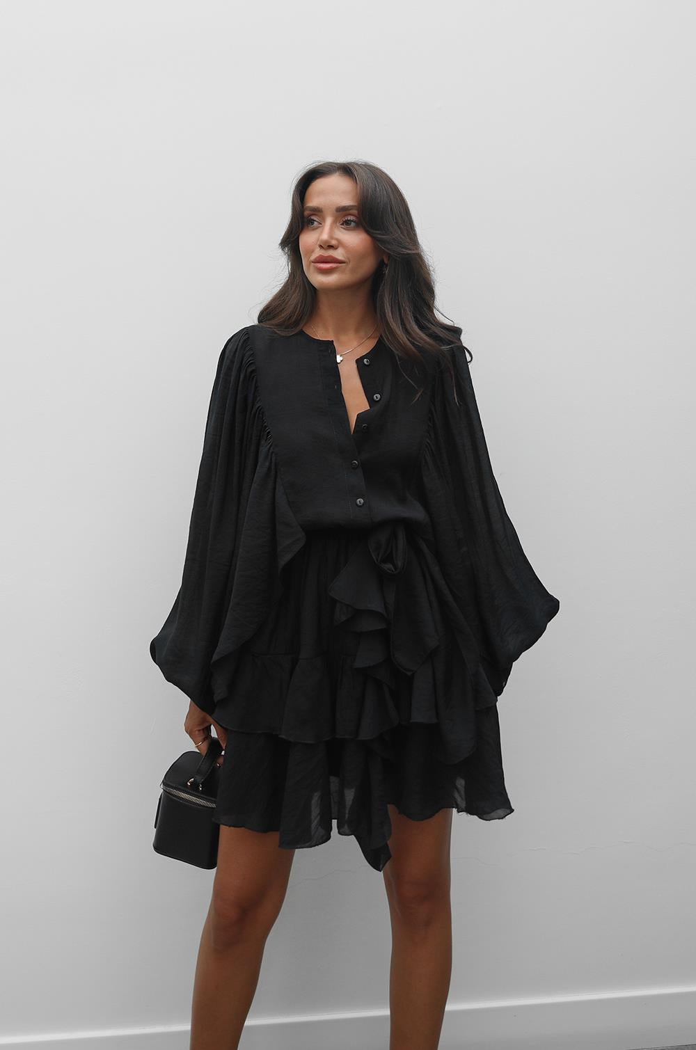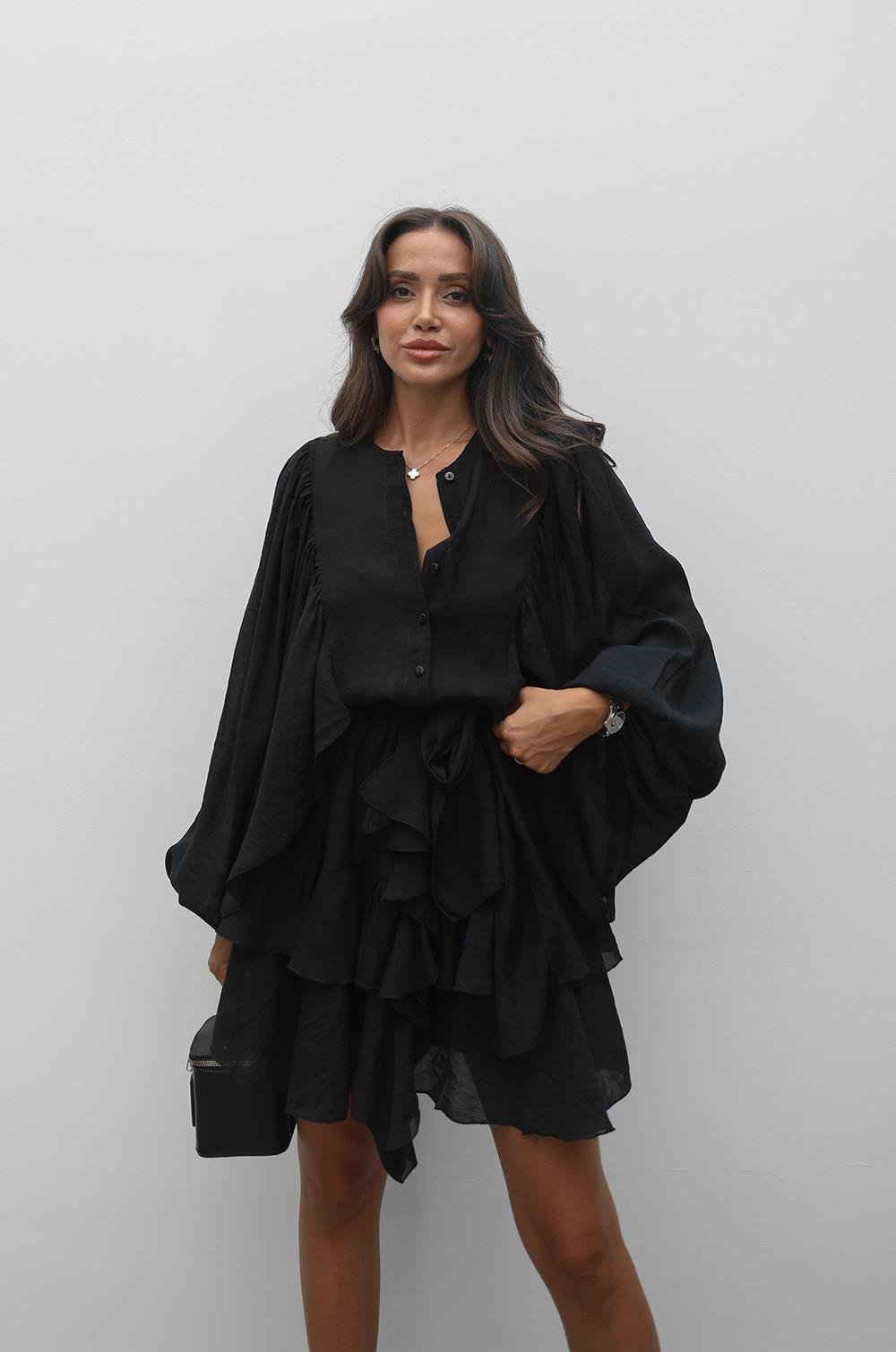 SIYAH HACIMLI BALON KOLLU ELBISE