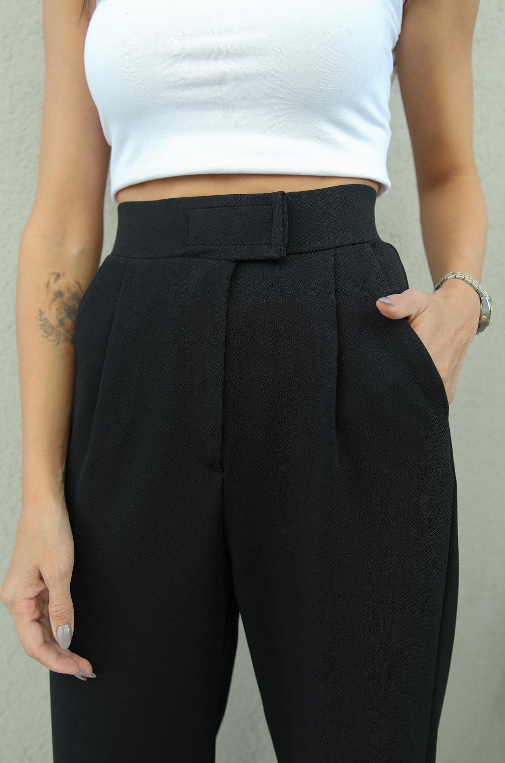 SIYAH SENTA CIRT CIRT KAPAMALI PALAZZO PANTOLON