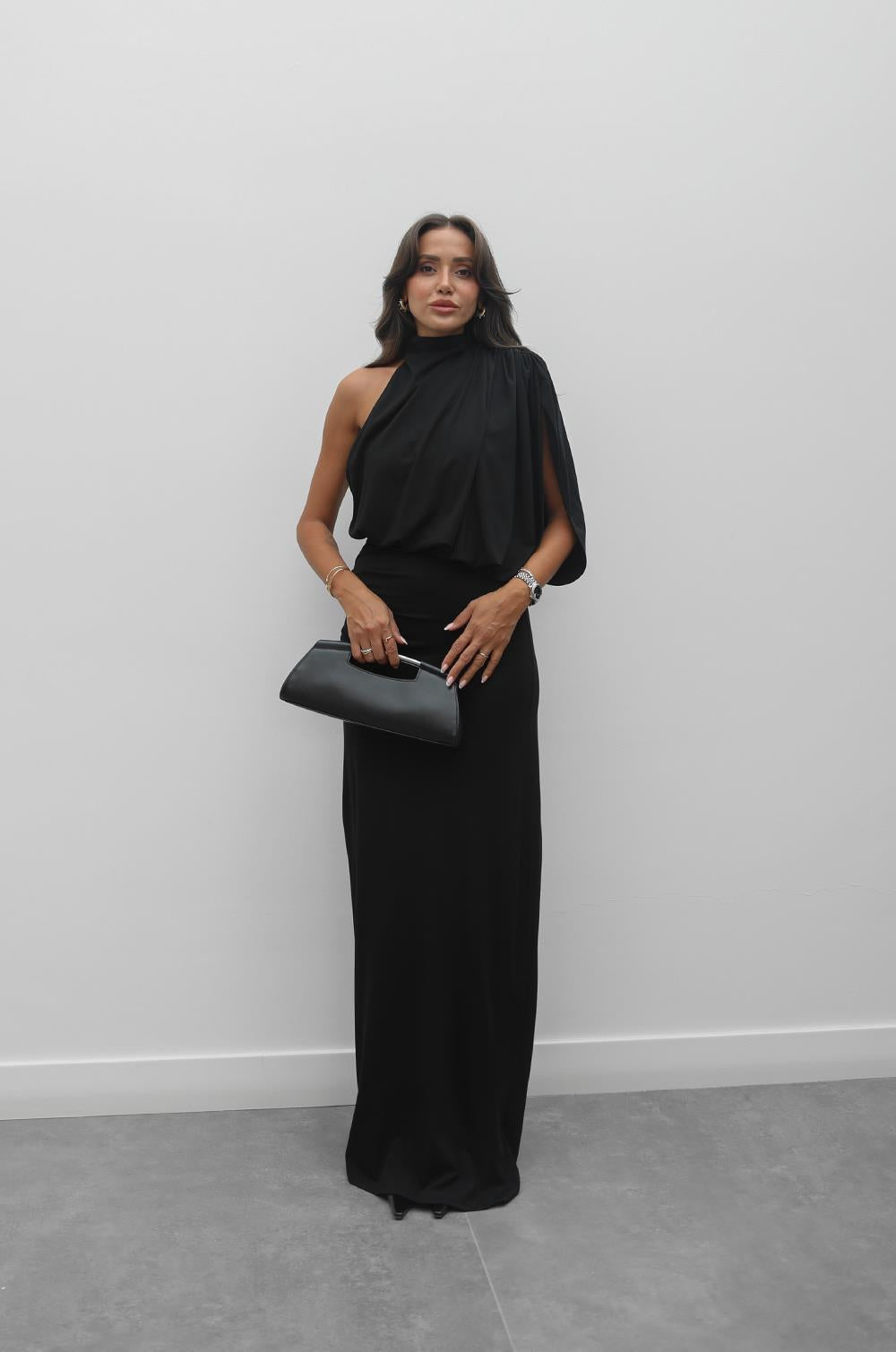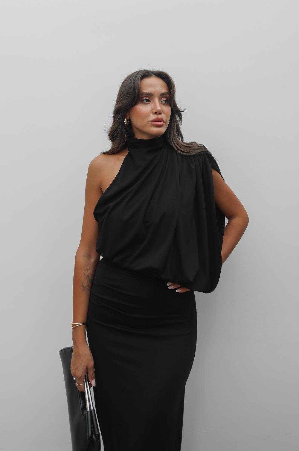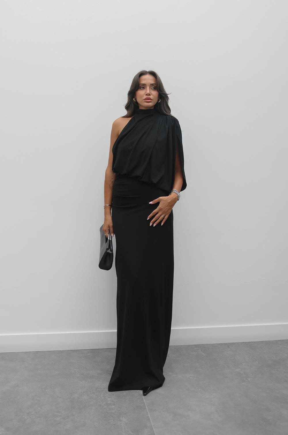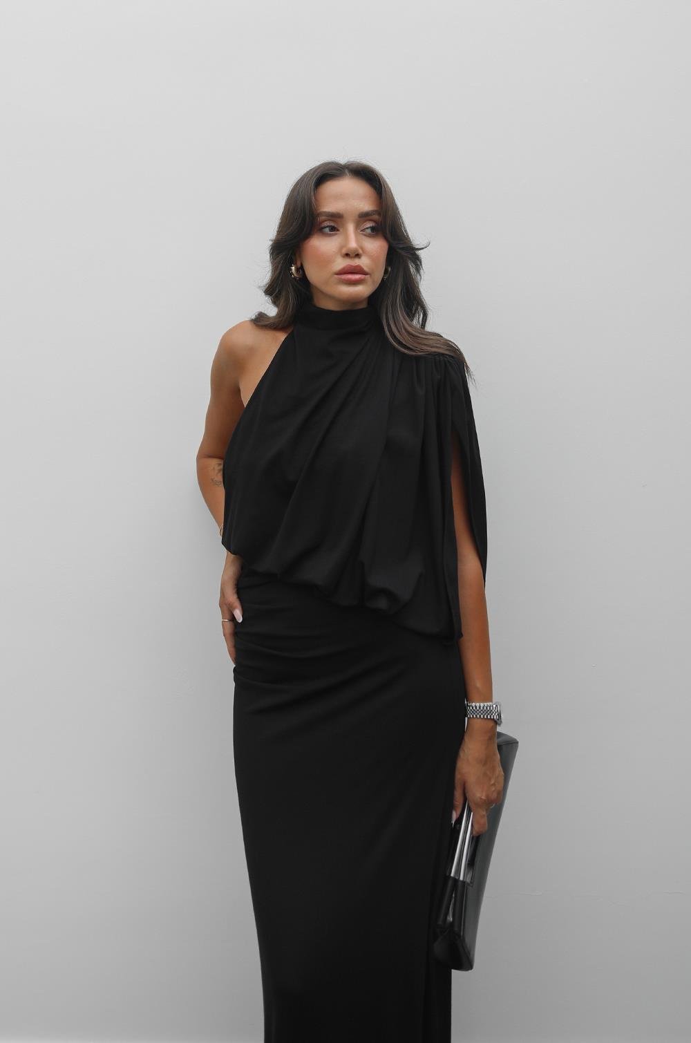 SIYAH YÜKSEK YAKALI TASARIM ELBISE