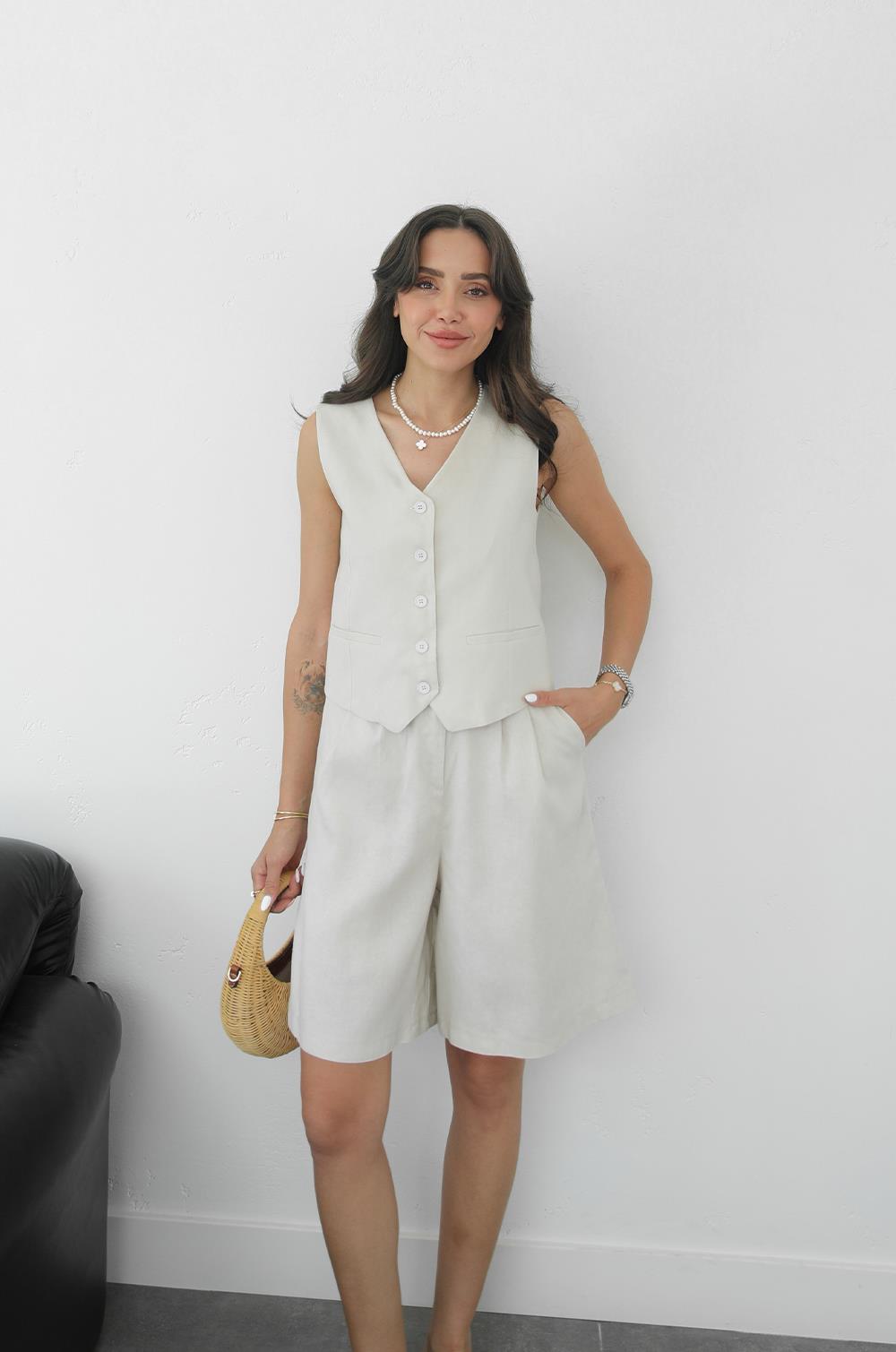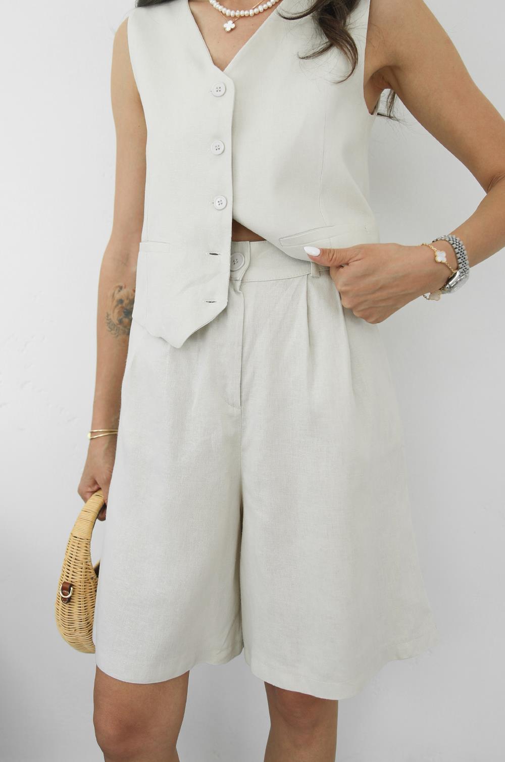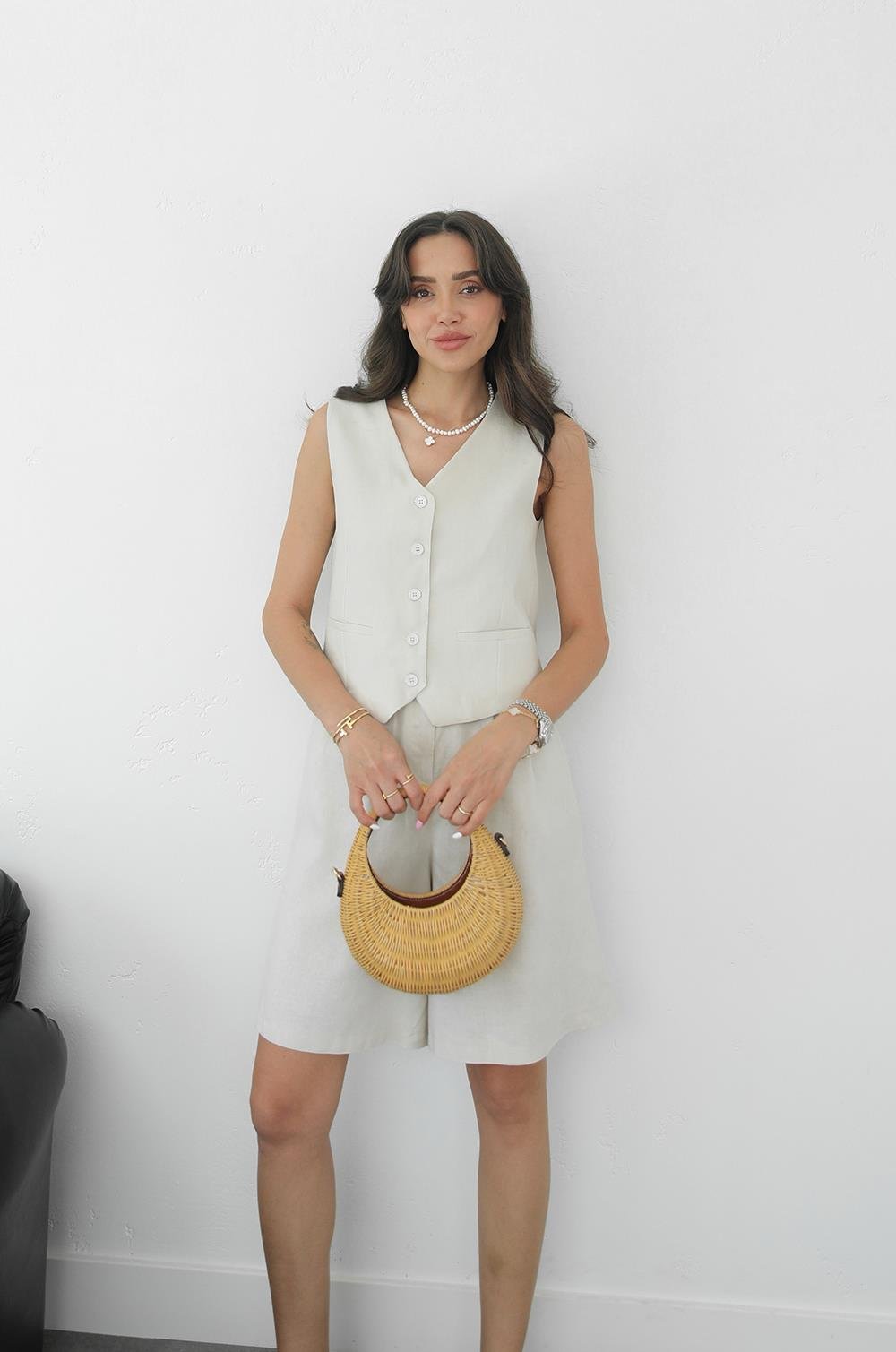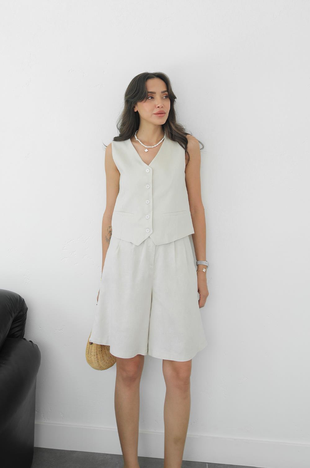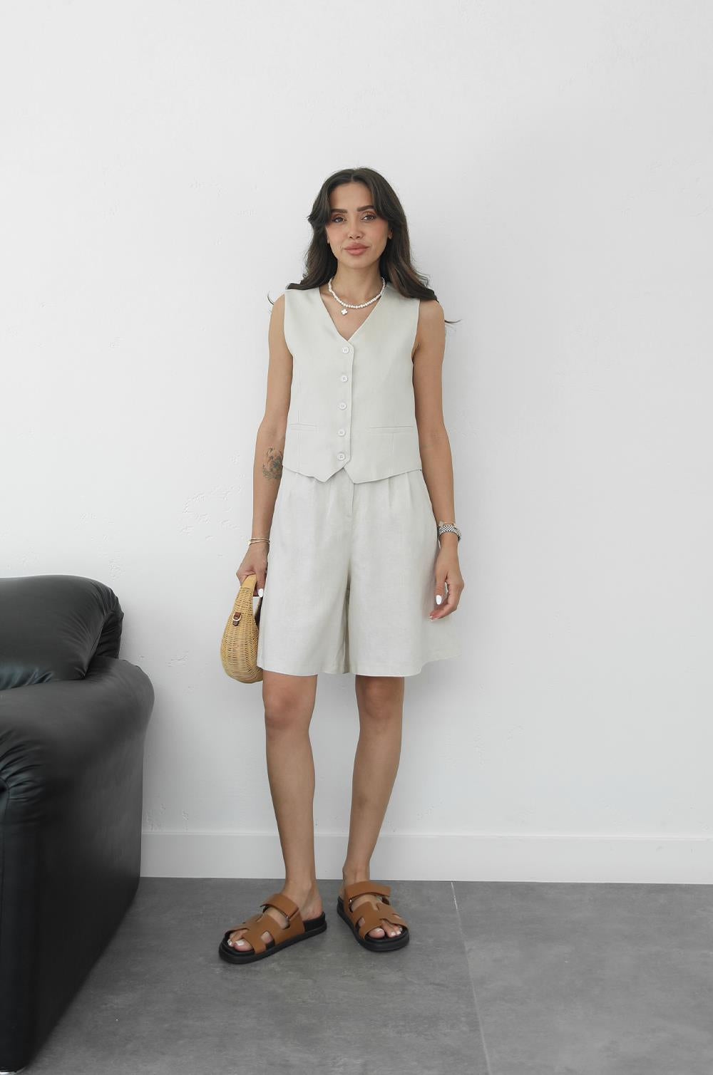 TAŞ RENGI BERMUDA ŞORT YELEK TAKIM