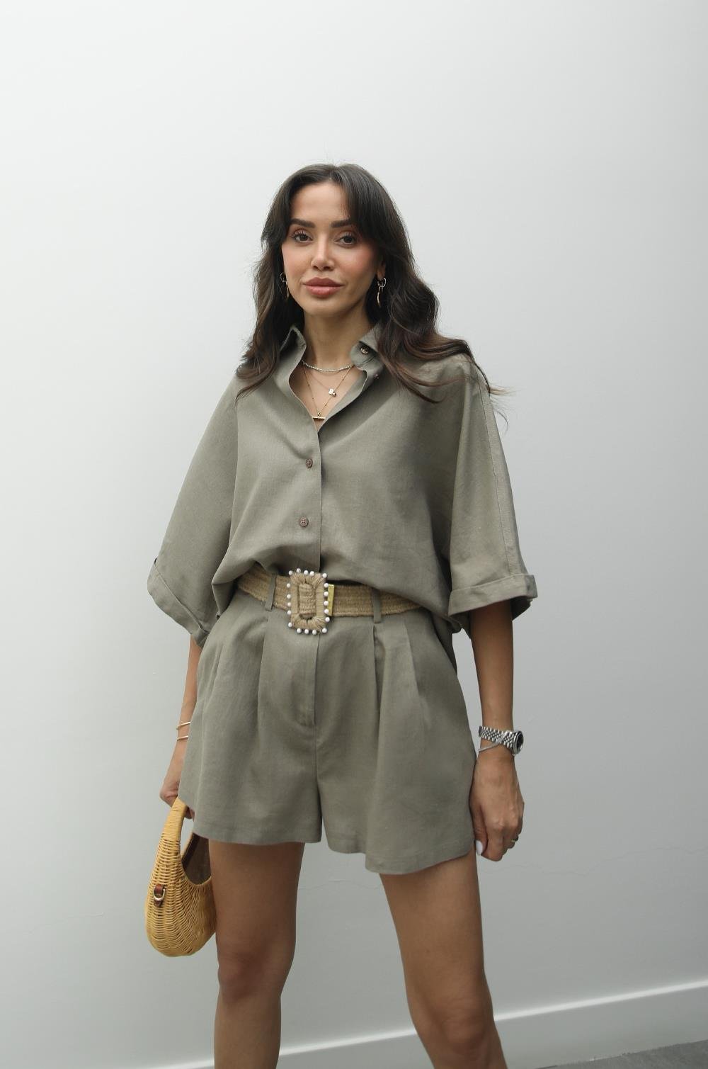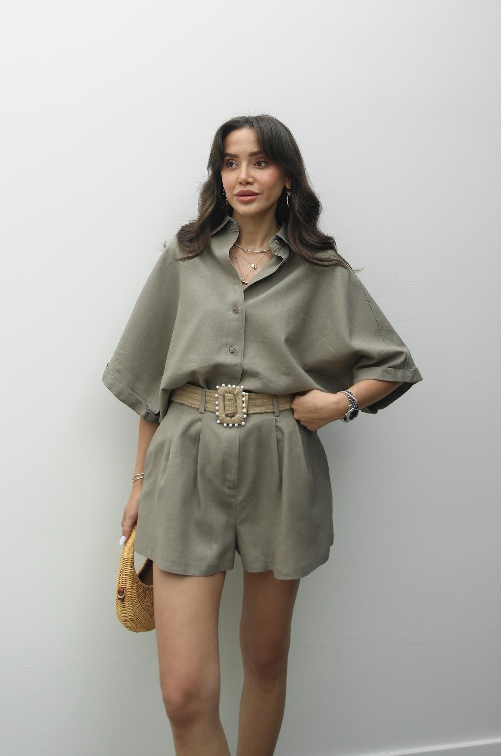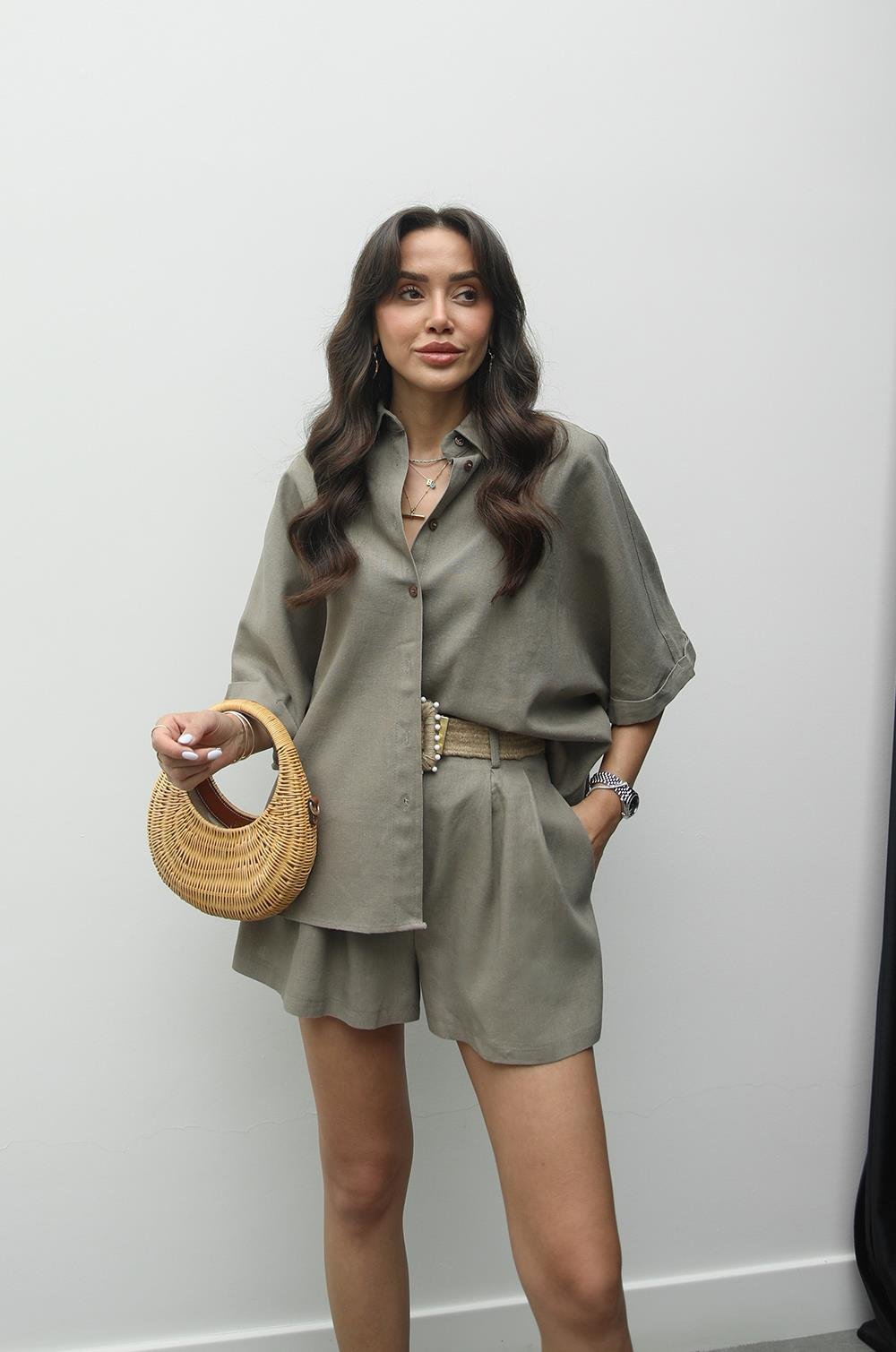 VIZON HASIR KEMERLI ŞORT GÖMLEK KETEN TAKIM