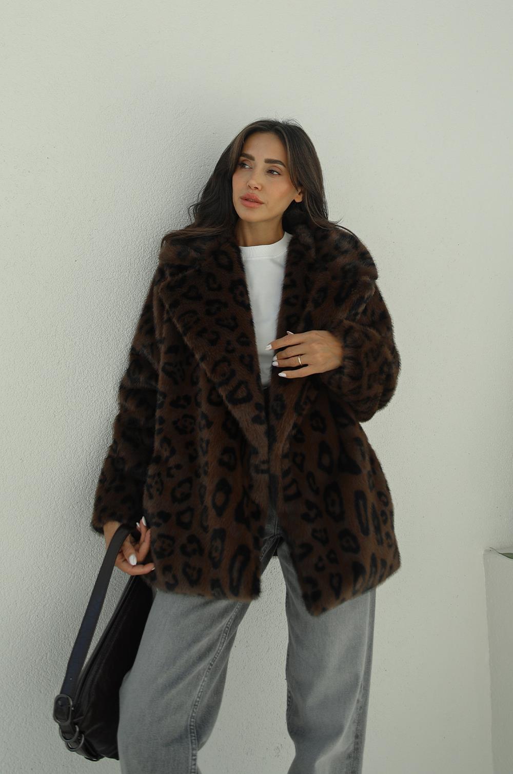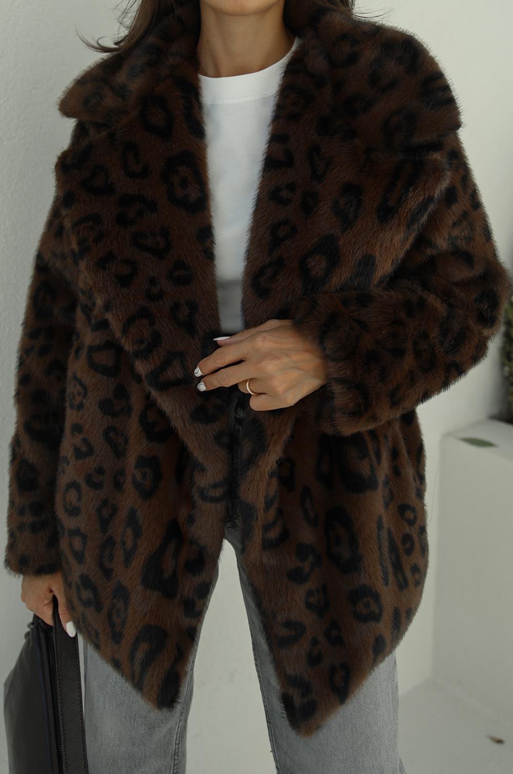 KAHVE LEOPAR SUNI KÜRK KABAN