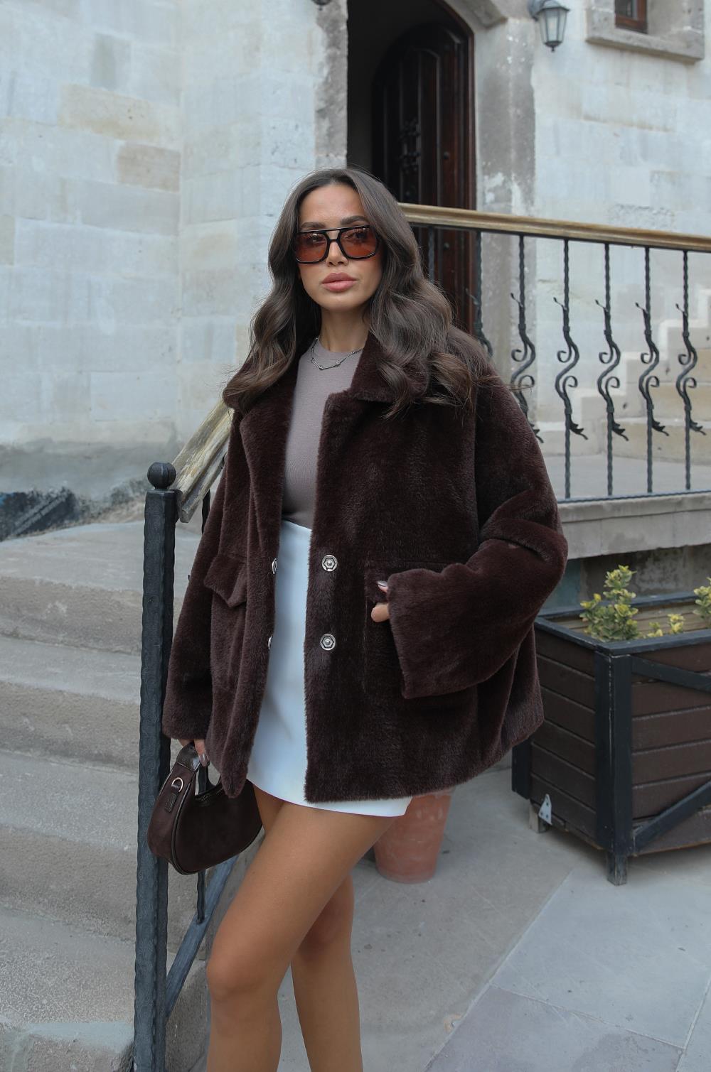 KAHVERENGI ALPAKA KÜRK KISA KABAN