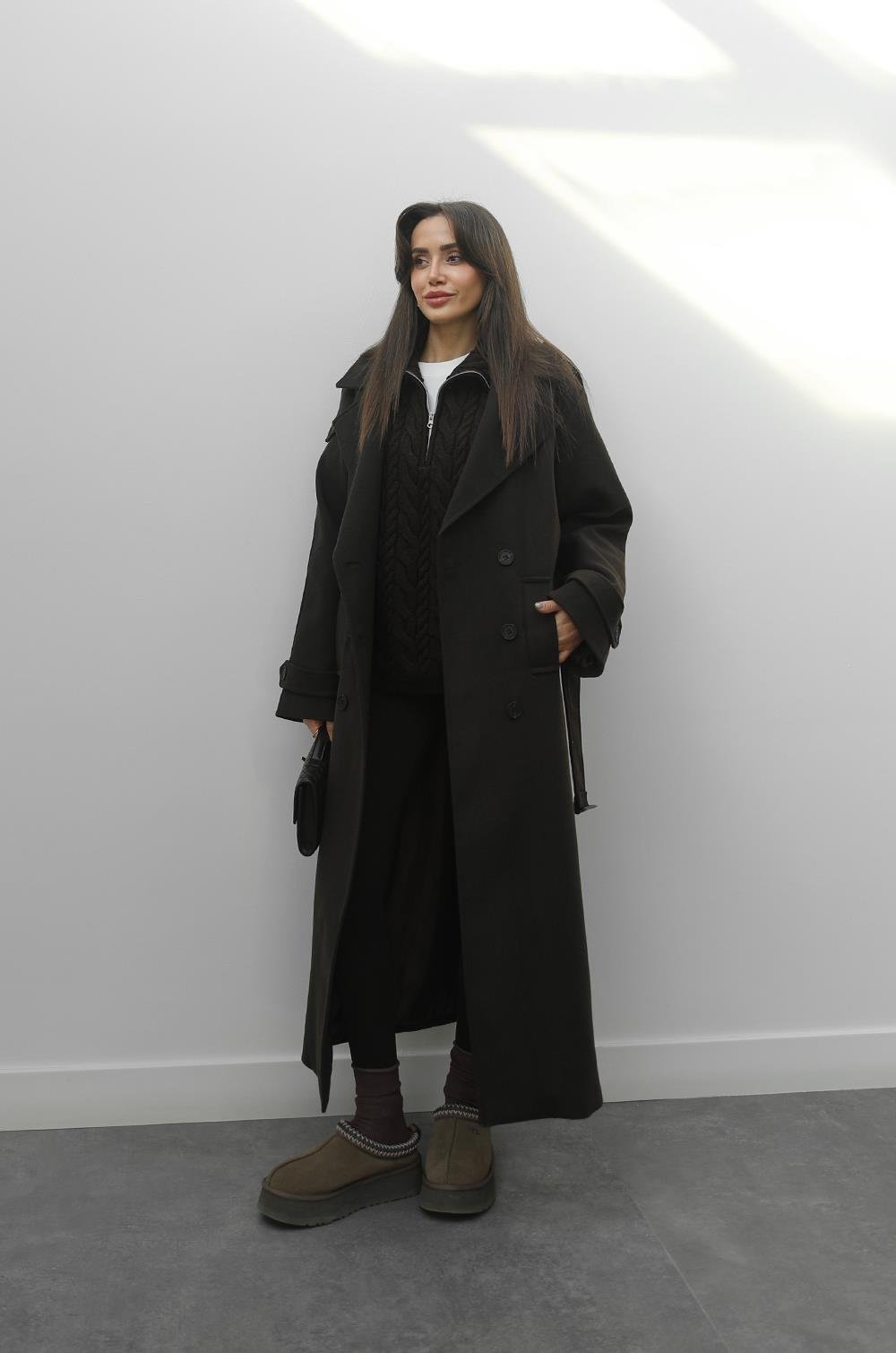 KAHVERENGI APOLET DETAYLI KUŞAKLI KABAN modeliyle kış stiline sıcaklık ve zarafet kat! Yumuşak dokusu ve modern kesimiyle her kombinine uyum sağlar. Oversize style sevenler için mükemmel bir seçim.