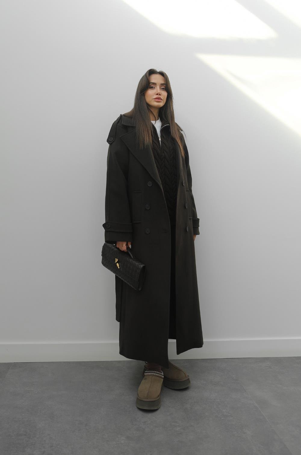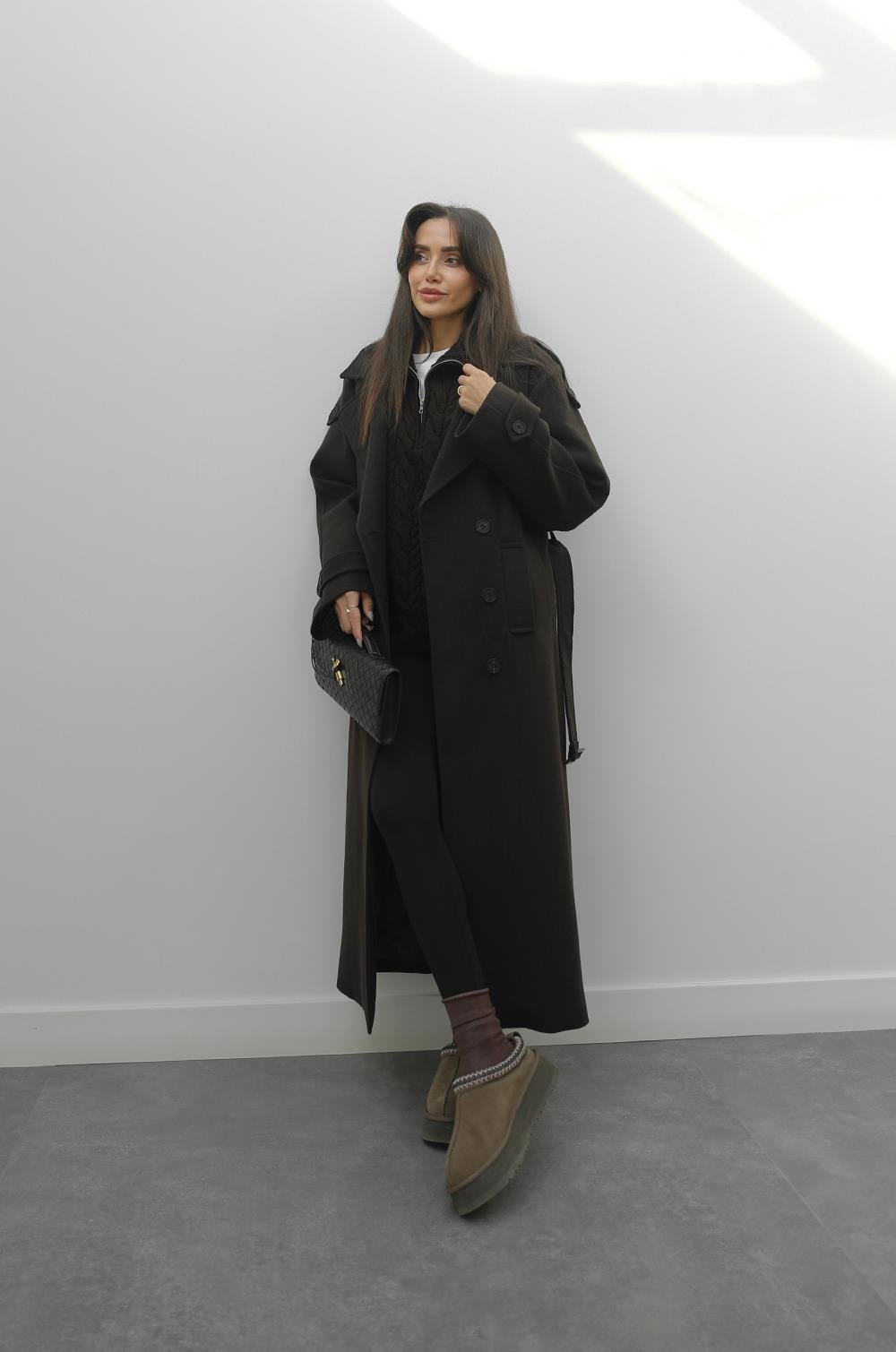 KAHVERENGI APOLET DETAYLI KUŞAKLI KABAN