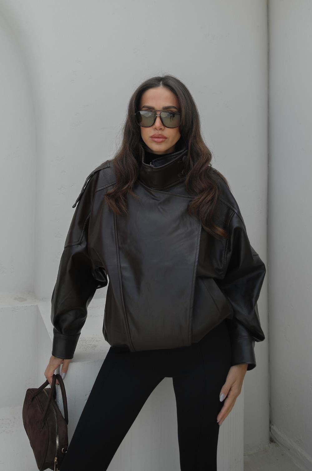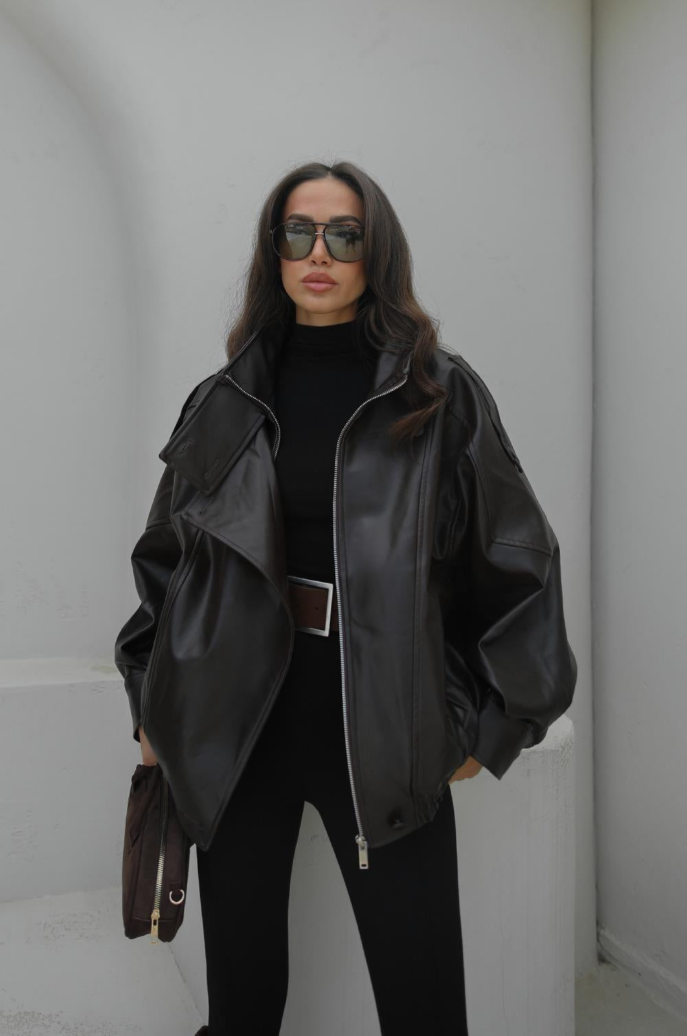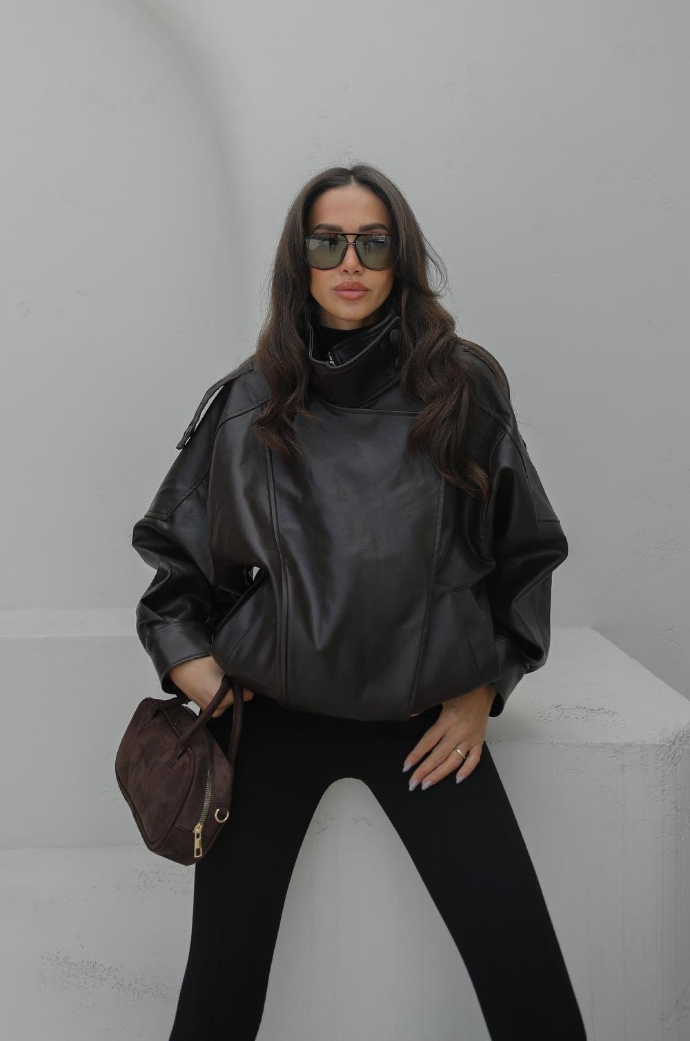KAHVERENGI BOĞAZ DETAYLI DERI CEKET