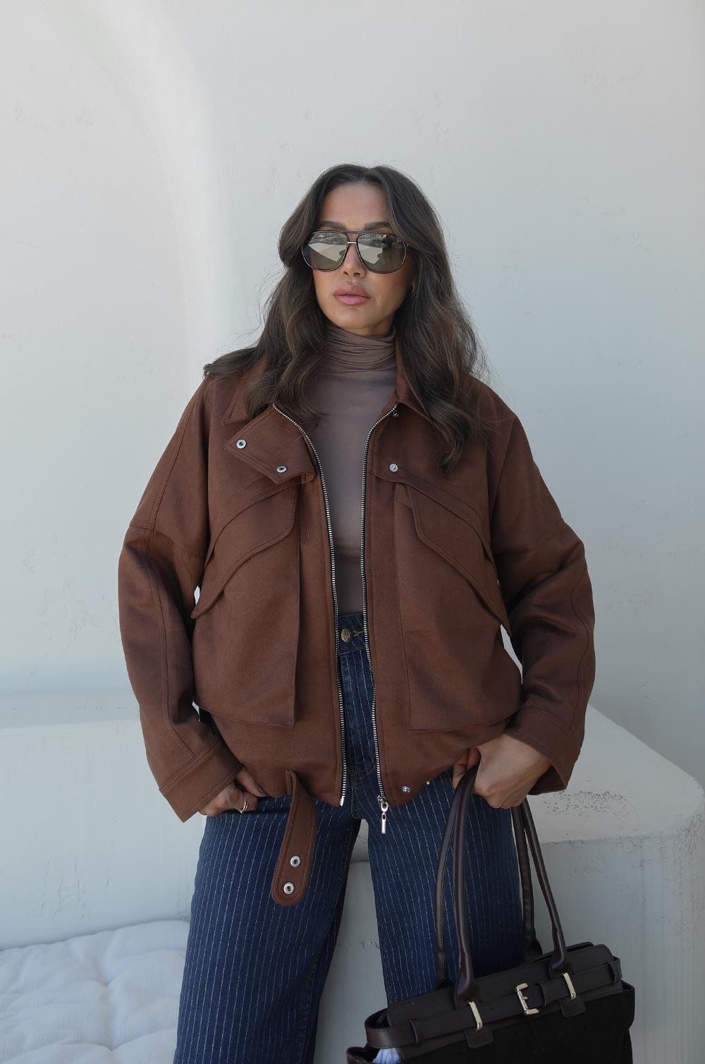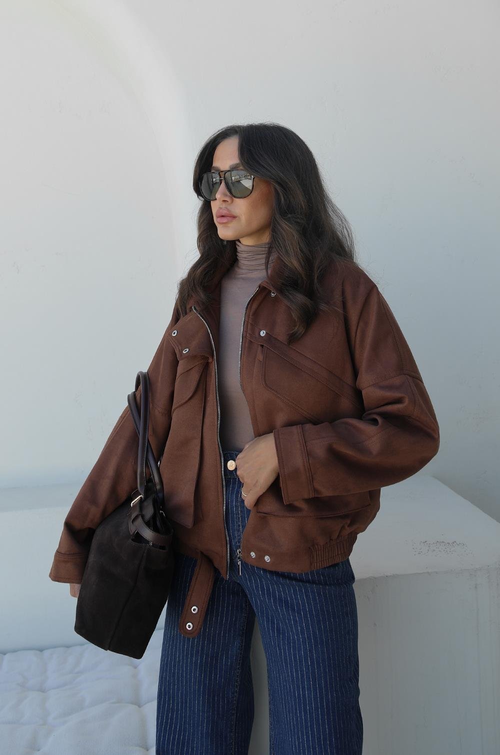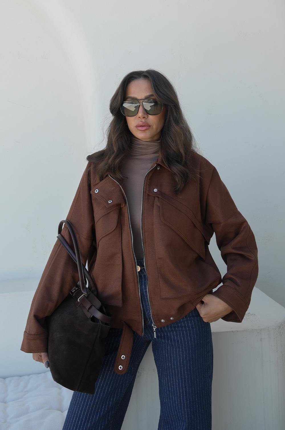 KAHVERENGI CEP DETAYLI SÜET BOMBER CEKET