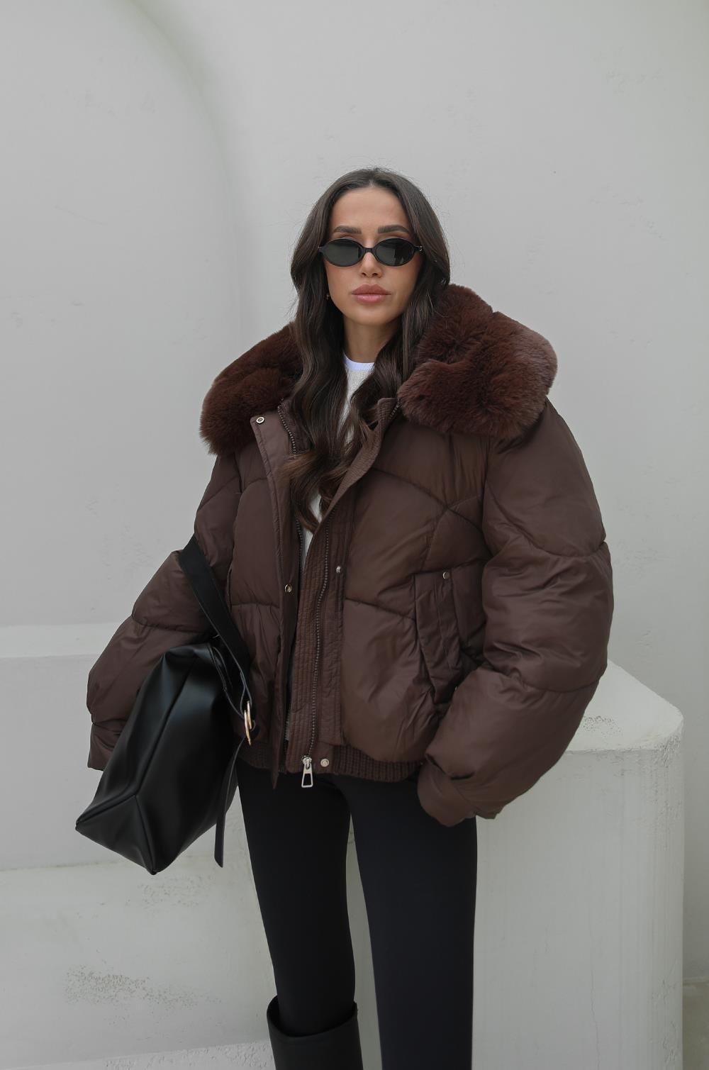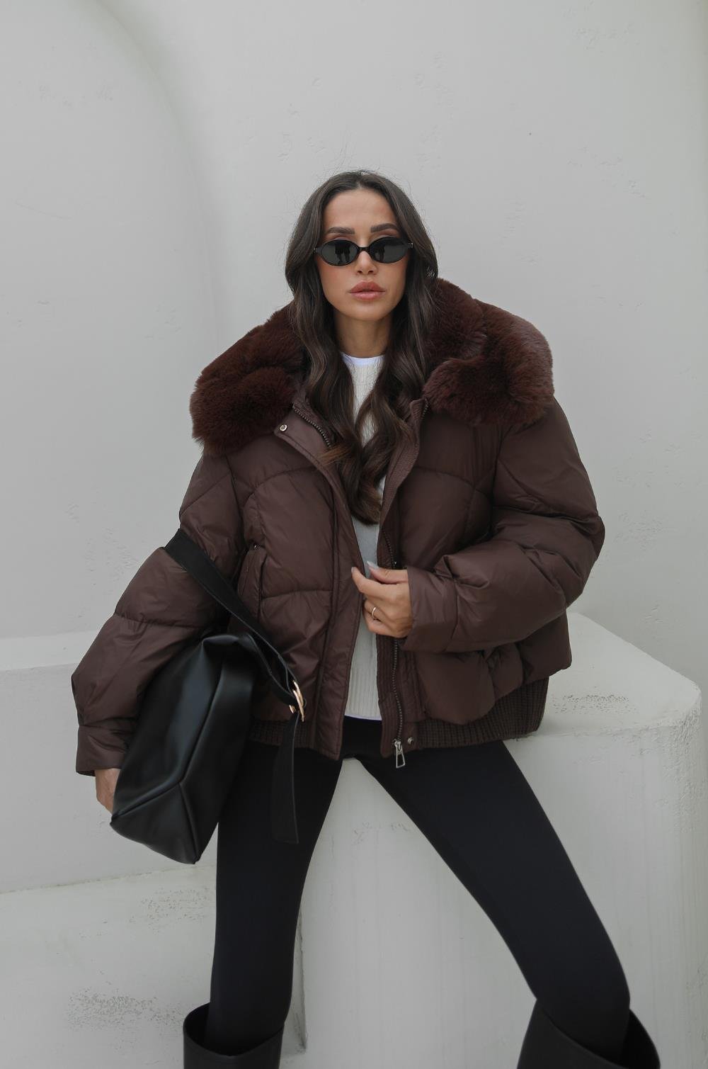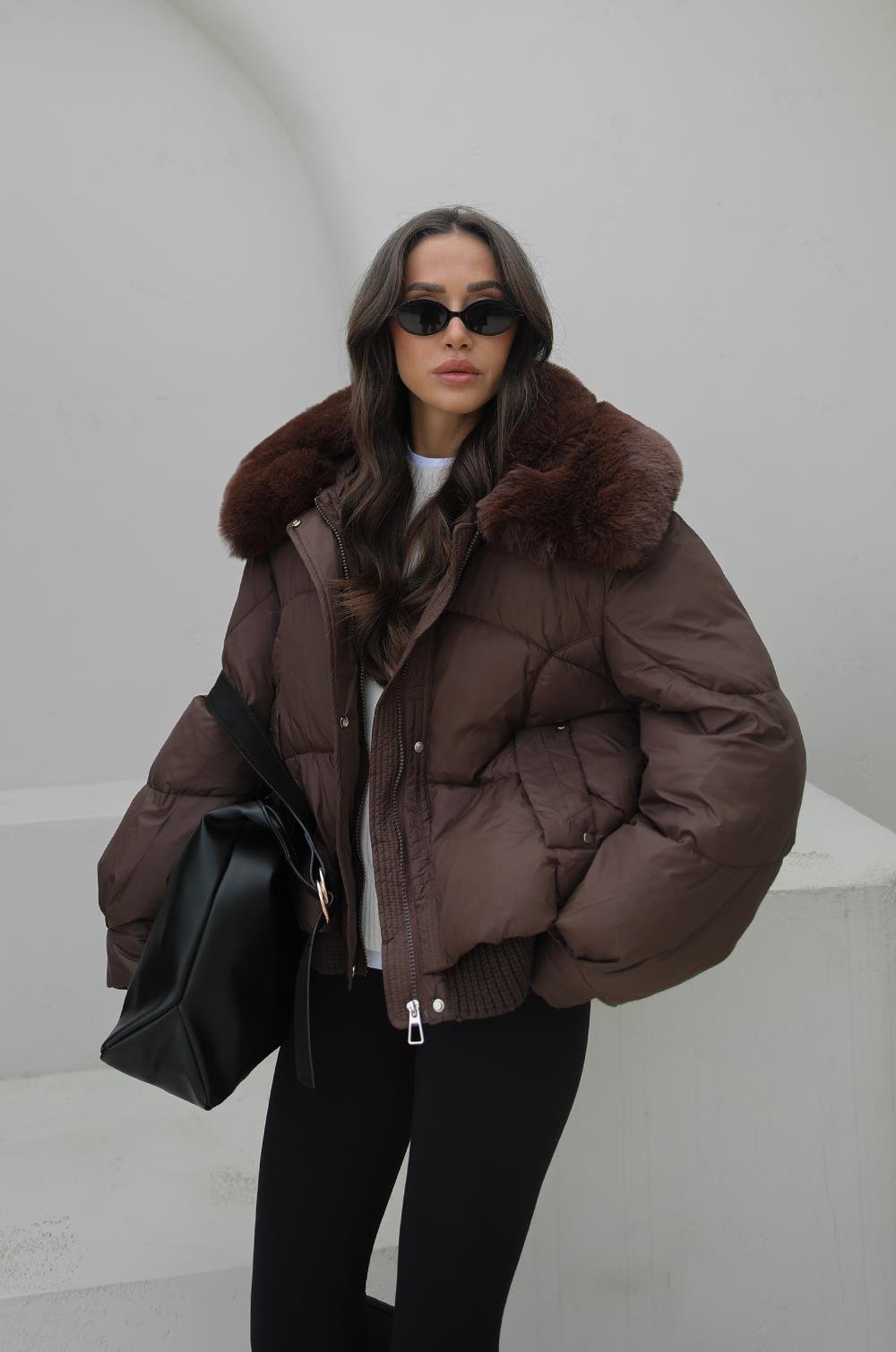 KAHVERENGI DELUXE KÜRK DETAYLI ŞIŞME MONT