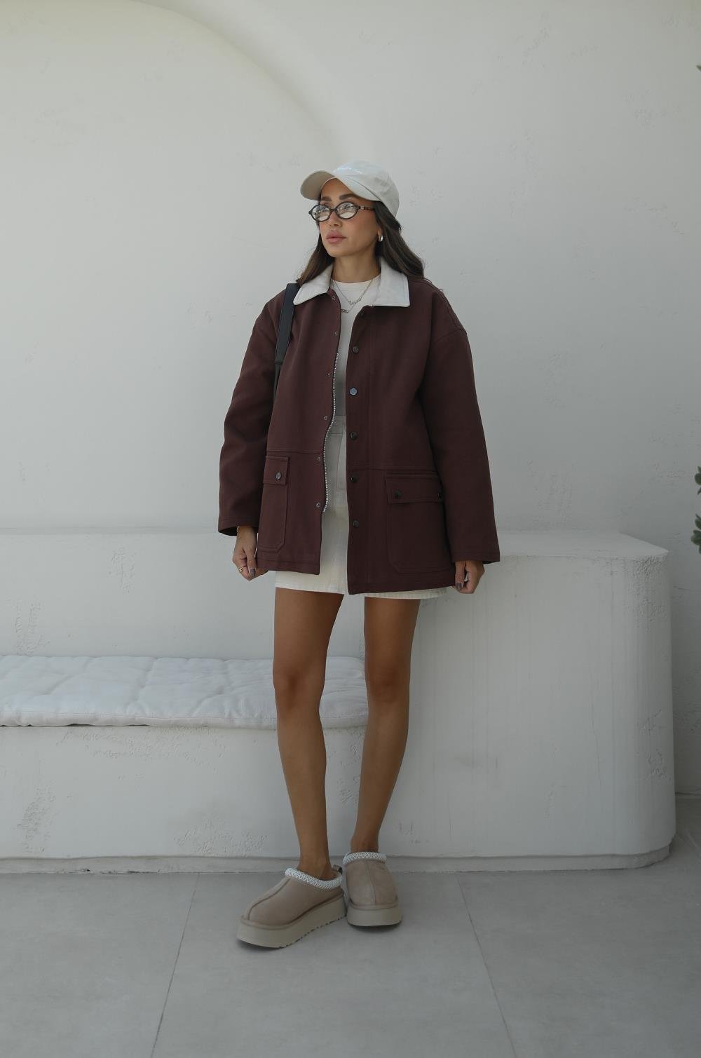 KAHVERENGI KADIFE YAKALI ASTARLI CEKET
