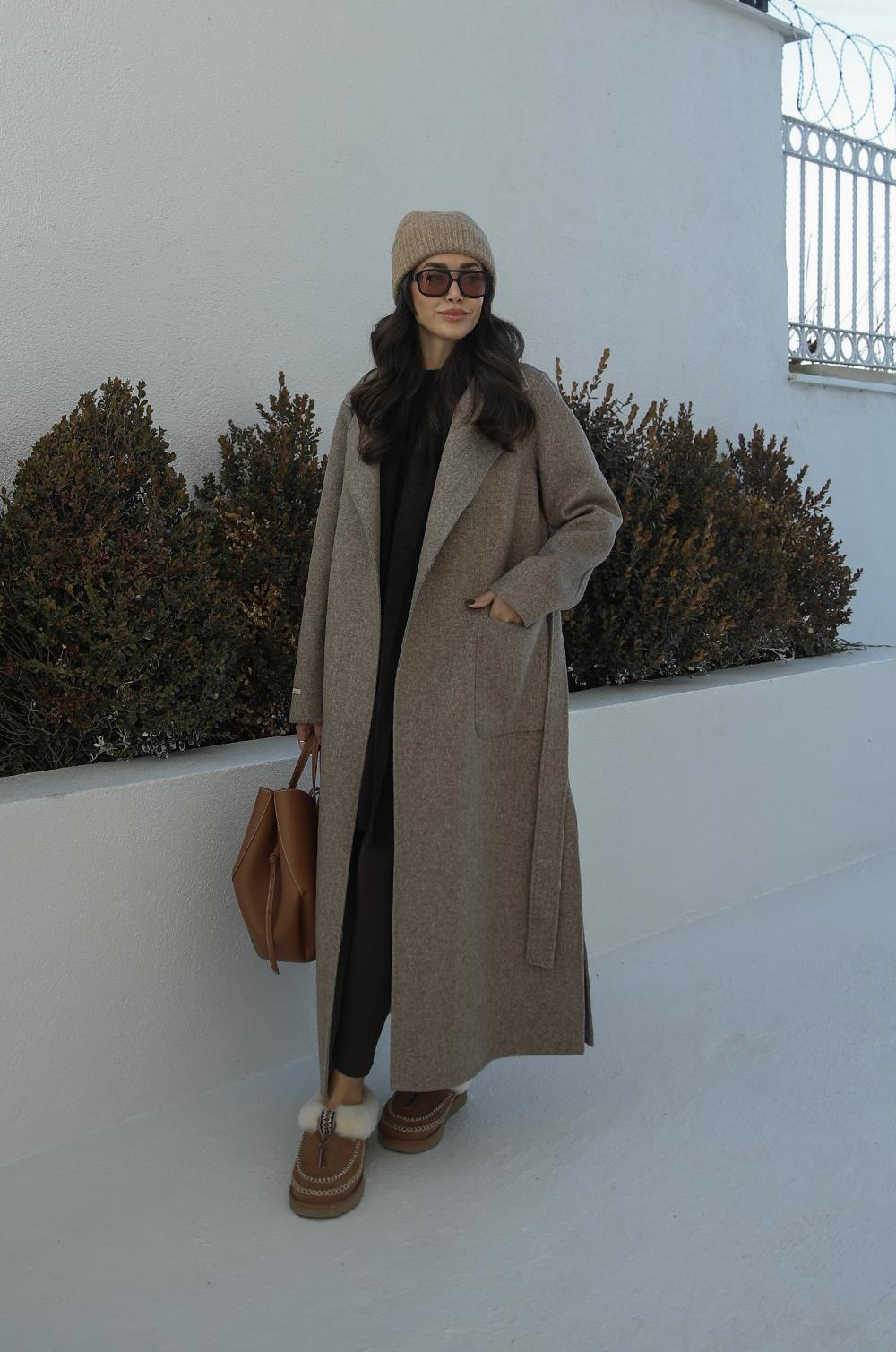 KAHVERENGI KUŞAKLI YÜN KABAN modeliyle kış stiline sıcaklık ve zarafet kat! Yumuşak dokusu ve modern kesimiyle her kombinine uyum sağlar. Oversize style sevenler için mükemmel bir seçim.