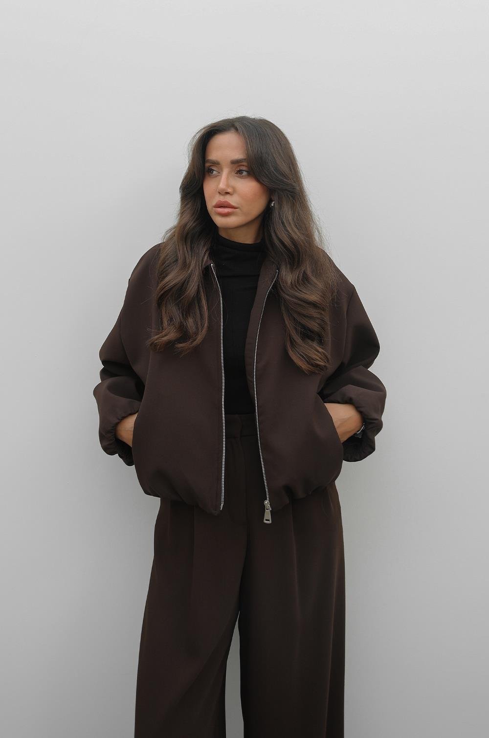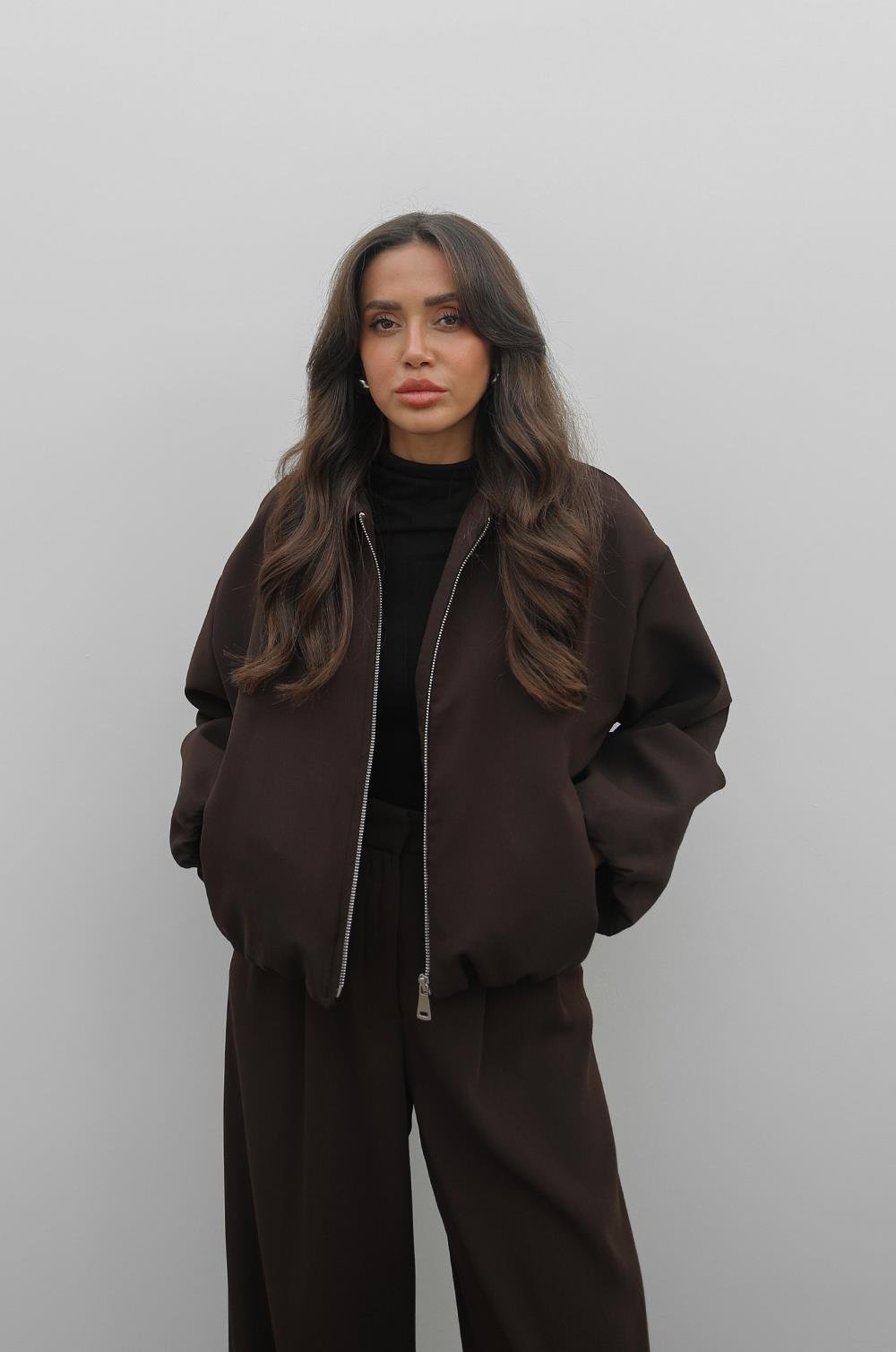 KAHVERENGI LUBE ÖNÜ FERMUARLI CEKET